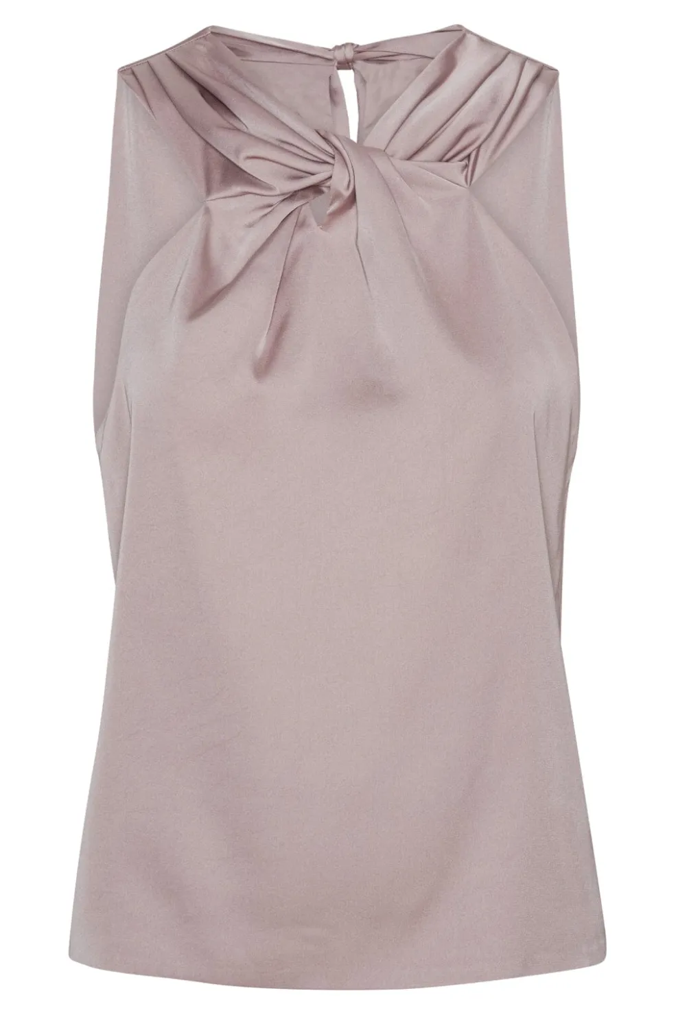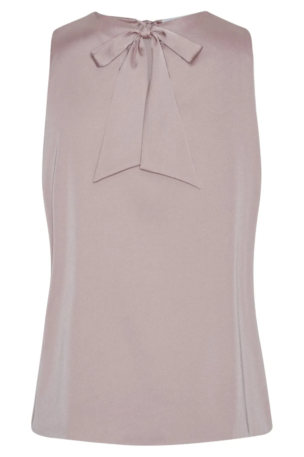 Ærmeløs top i blush-farve med sløjfe ved nakken. Toppen har en rund halsudskæring og er lavet af miljøvenlige materialer med fokus på genanvendt polyester.