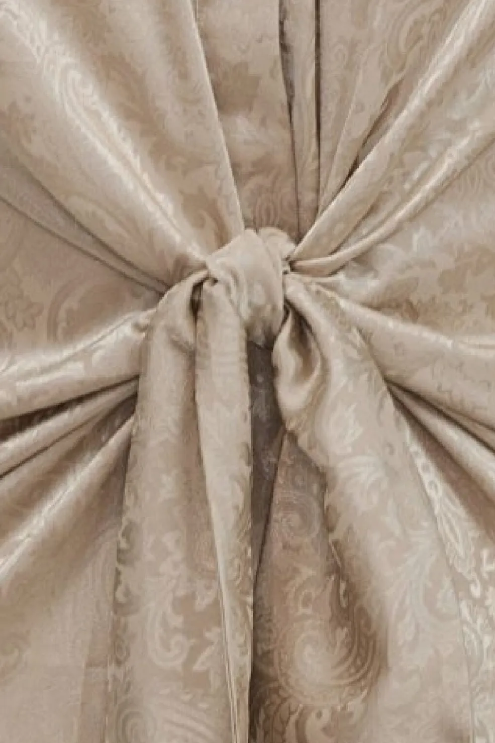 Cremefarvet skjorte fra Karmamia i jacquardvævet terylen med paisleymønster. Skjorten har krave, knapper foran og bindebånd ved taljen.