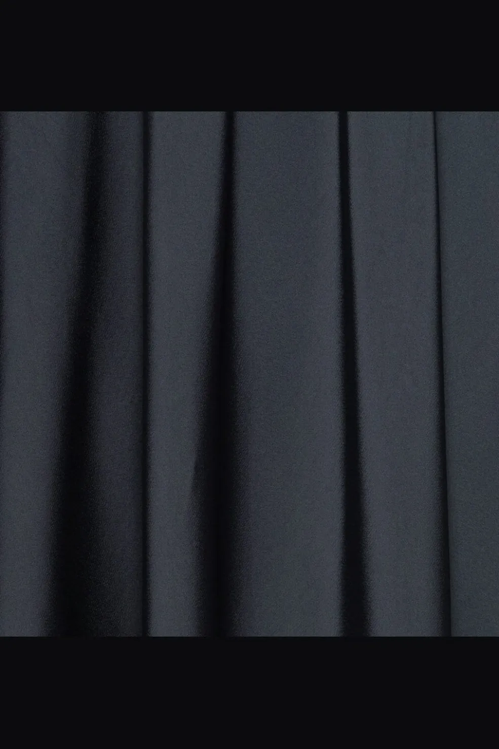Mørkeblå nederdel fra Karmamia i skinnende satin. Den har høj talje med rynket elastik og falder løst ned til læggene med bløde folder.