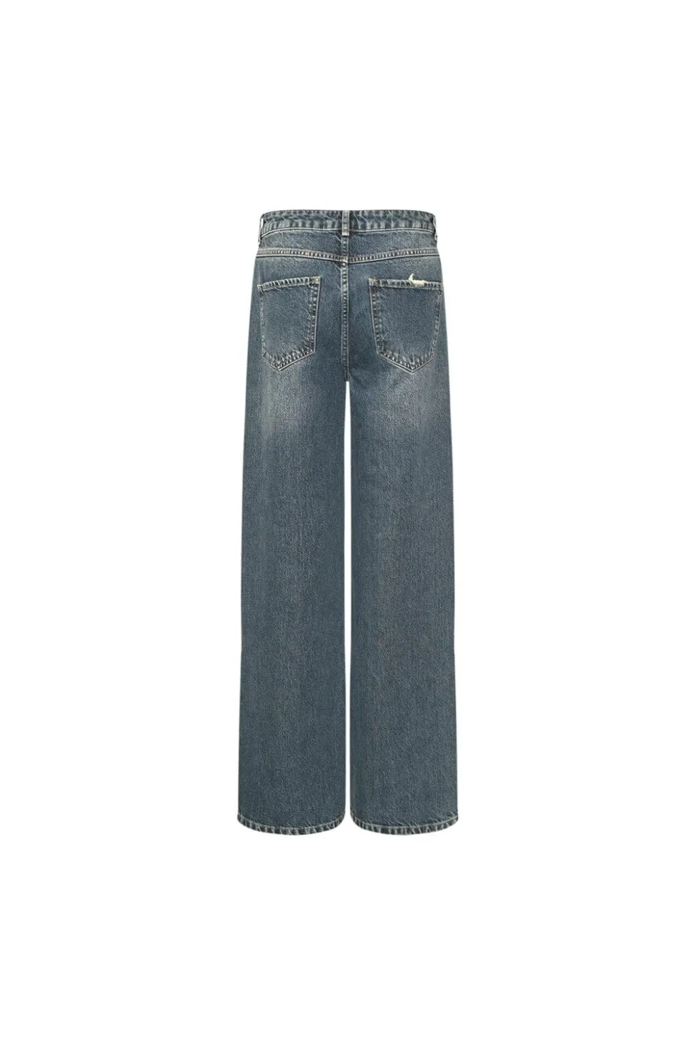Blå jeans fra Noella med vintagevask. De har brede ben og høj talje. Bukserne lukkes med lynlås og knapper foran, og stoffet har en let vasket overflade, der giver et slidt look.