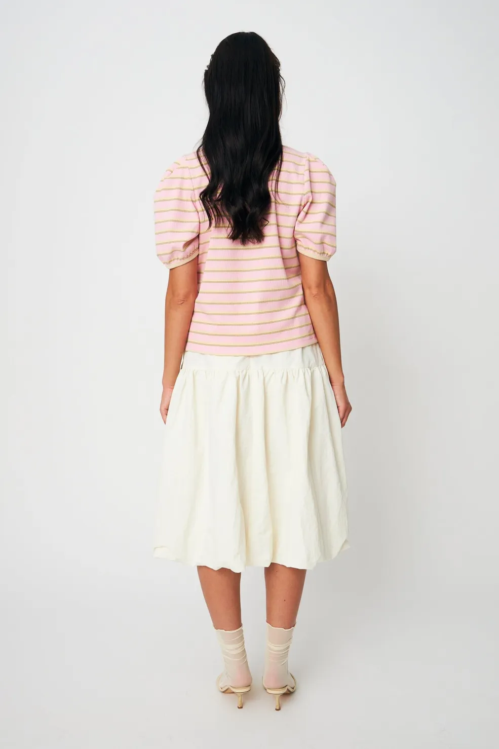 Stribet polo t-shirt fra Cras med lyserøde og gule striber. T-shirten har en lys krave med perleknapdetaljer og korte ærmer med slim fit-pasform.