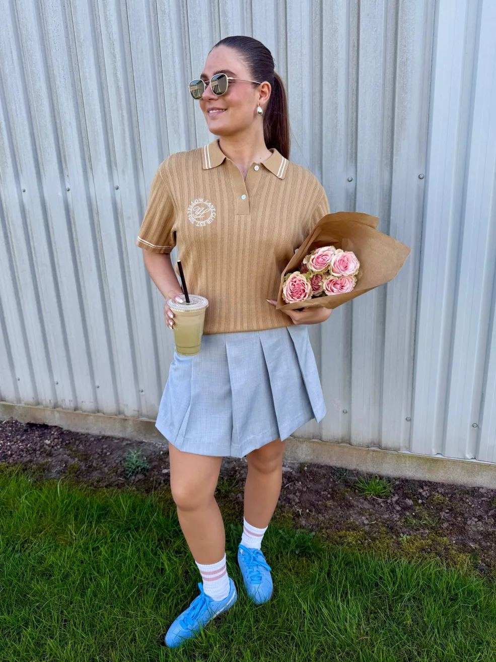 Mini skort fra Yellow Lane i grå melange. Den korte længde og det plisserede design gør skorten både praktisk og stilfuld.
