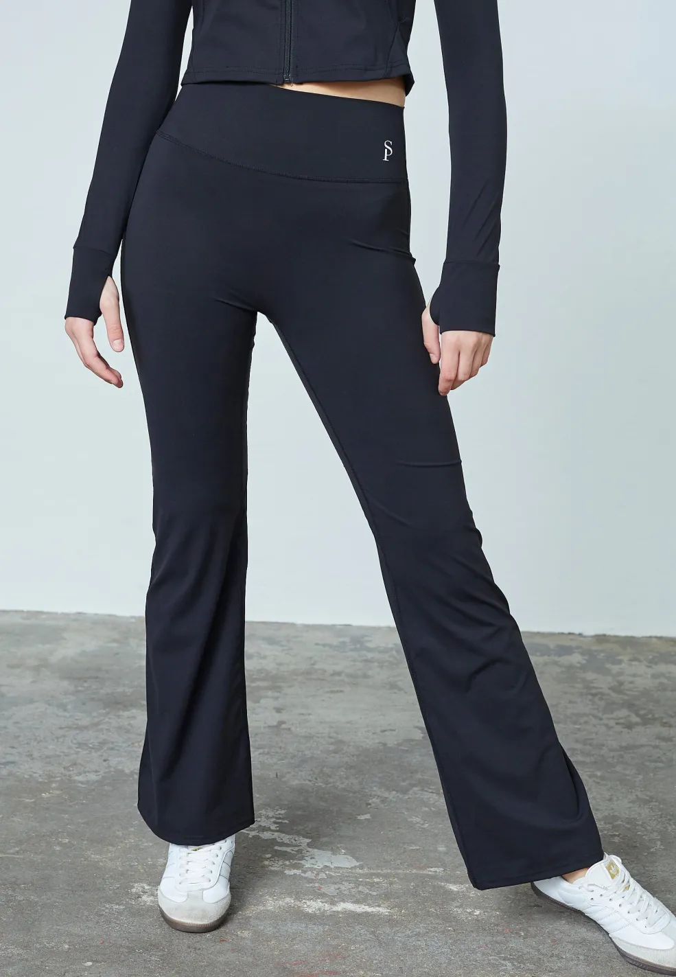 Sorte bukser fra Sisters Point med høj talje og bootcut-pasform. Bukserne er lavet af 60 % nylon og 40 % elastan.