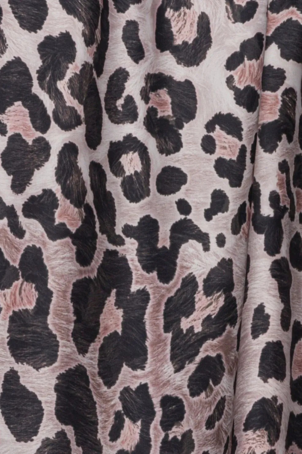Lang kjole fra Karmamia med leopardprint og blomstermønster. Den høje hals har bindebånd, og kjolen har en løs pasform med bindebånd i taljen.