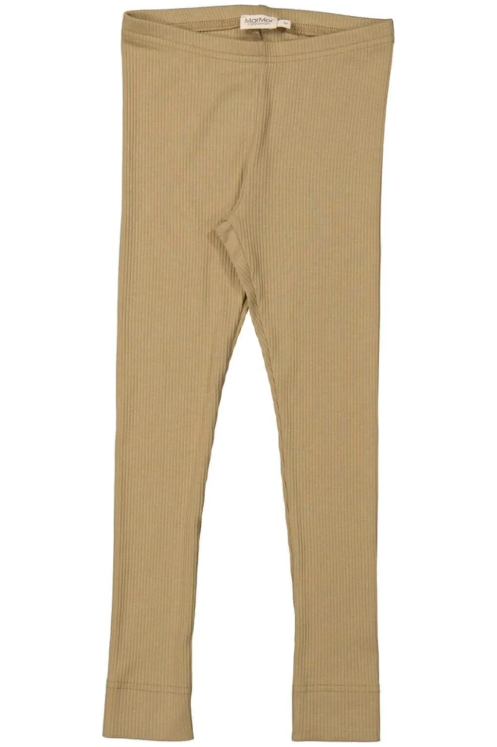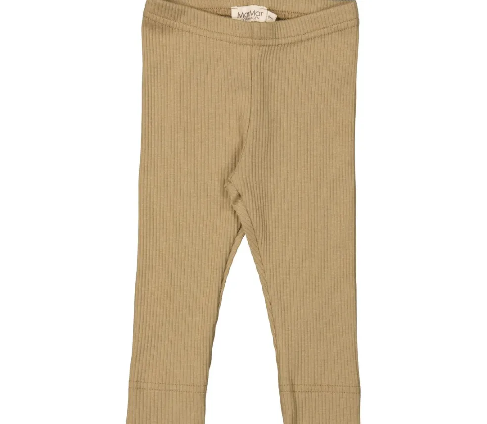 Beige leggings fra MarMar med ribbet tekstur. Den elastiske talje og ankellængden giver en god pasform til bevægelse og leg.