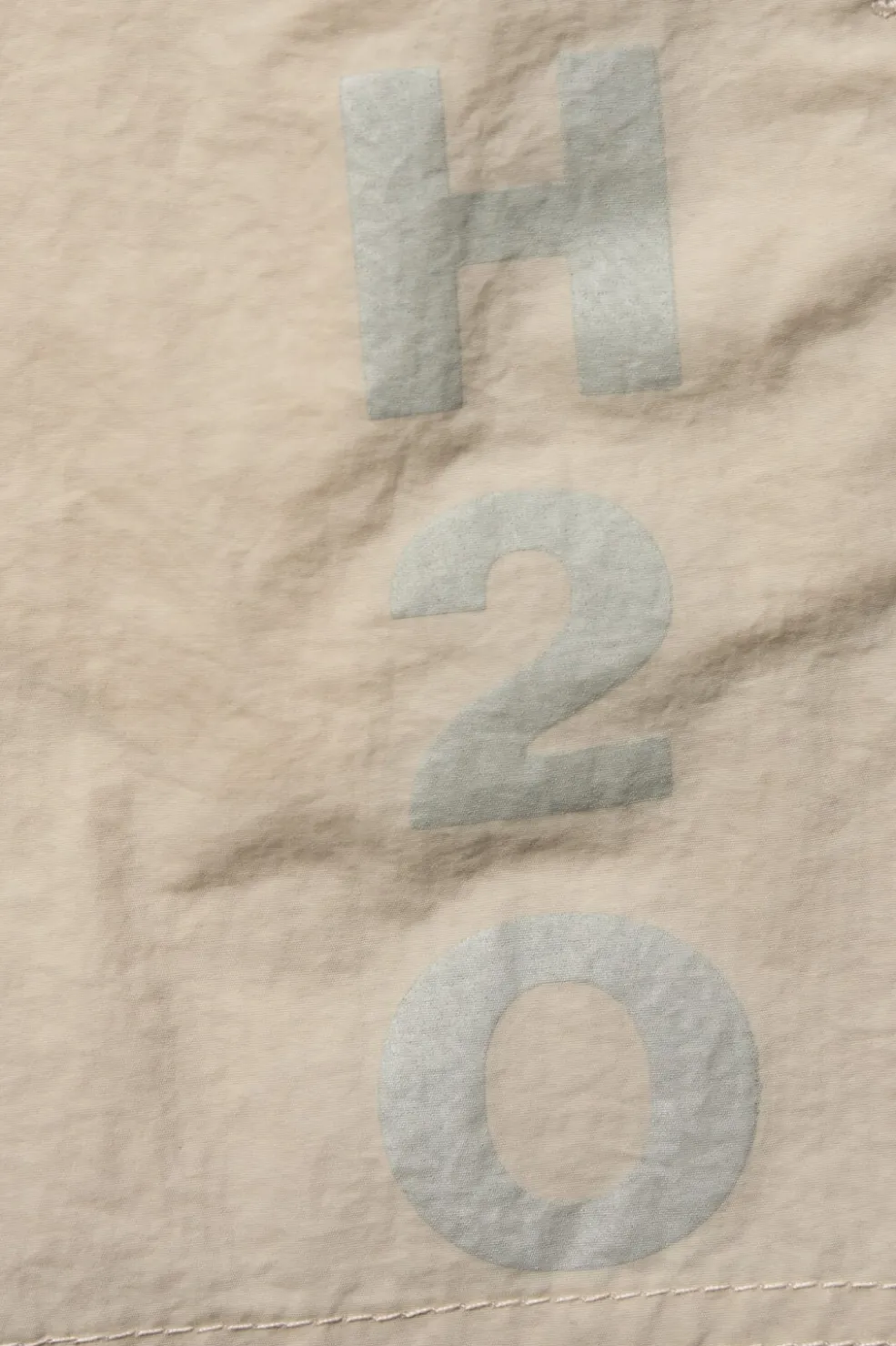 Beige badeshorts fra H2O i TACTEL® nylon med broderet logo på siden. Shortsene har elastisk talje med snørelukning og en praktisk baglomme med velcro.