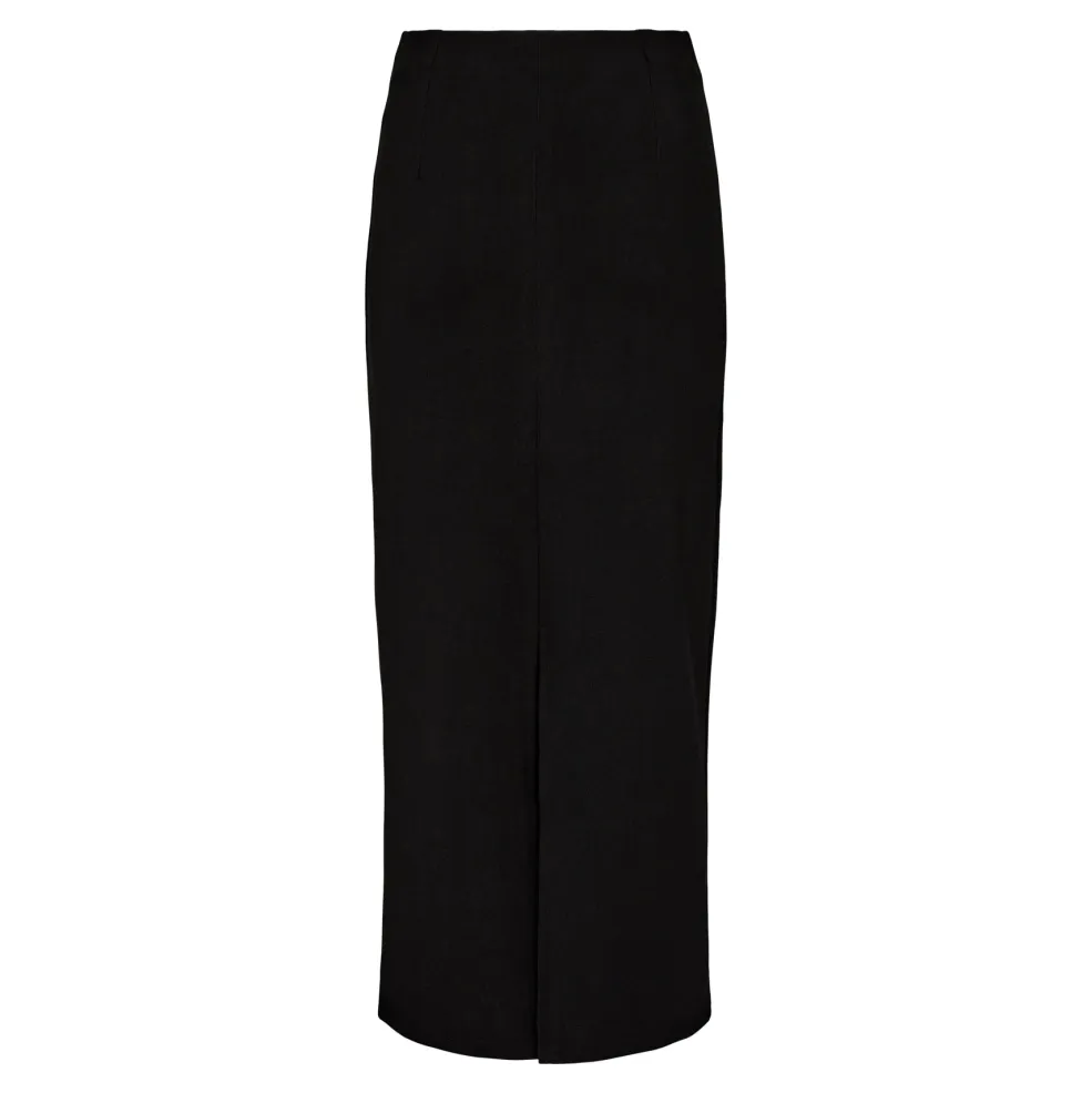 Sort lang nederdel fra Liberte med et enkelt design. Den sorte farve gør den nem at style, og den lange længde passer til mange anledninger.
