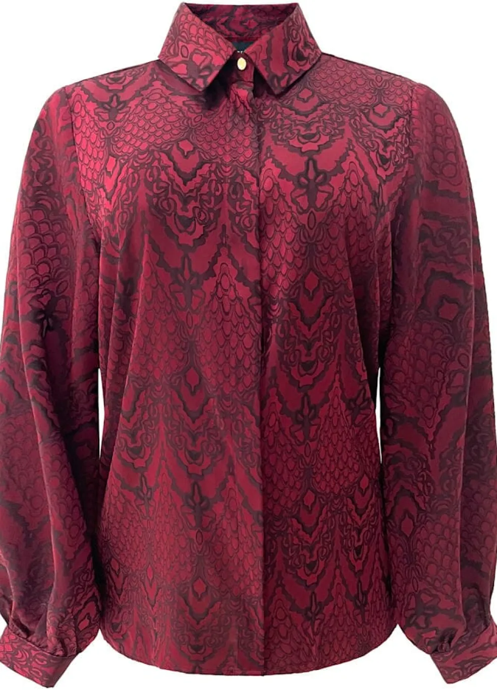 Bordeaux skjorte fra Liberte med dyreprint. Skjorten har lange ærmer, klassisk skjortekrave og knaplukning. Den er fremstillet i en blanding af polyester og spandex.