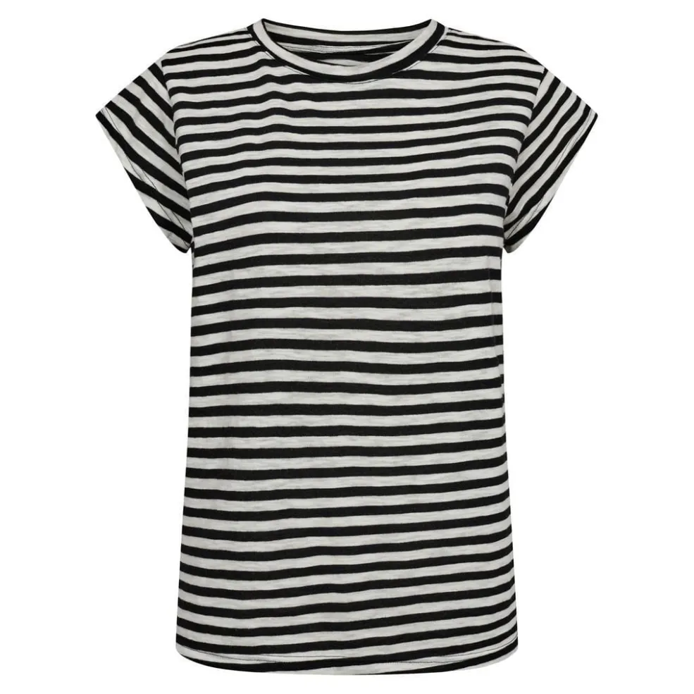 Sort-hvid stribet t-shirt fra Liberte med rund halsudskæring og korte ærmer. De horisontale striber skaber et klassisk udtryk, og den regulære pasform gør t-shirten nem at style.