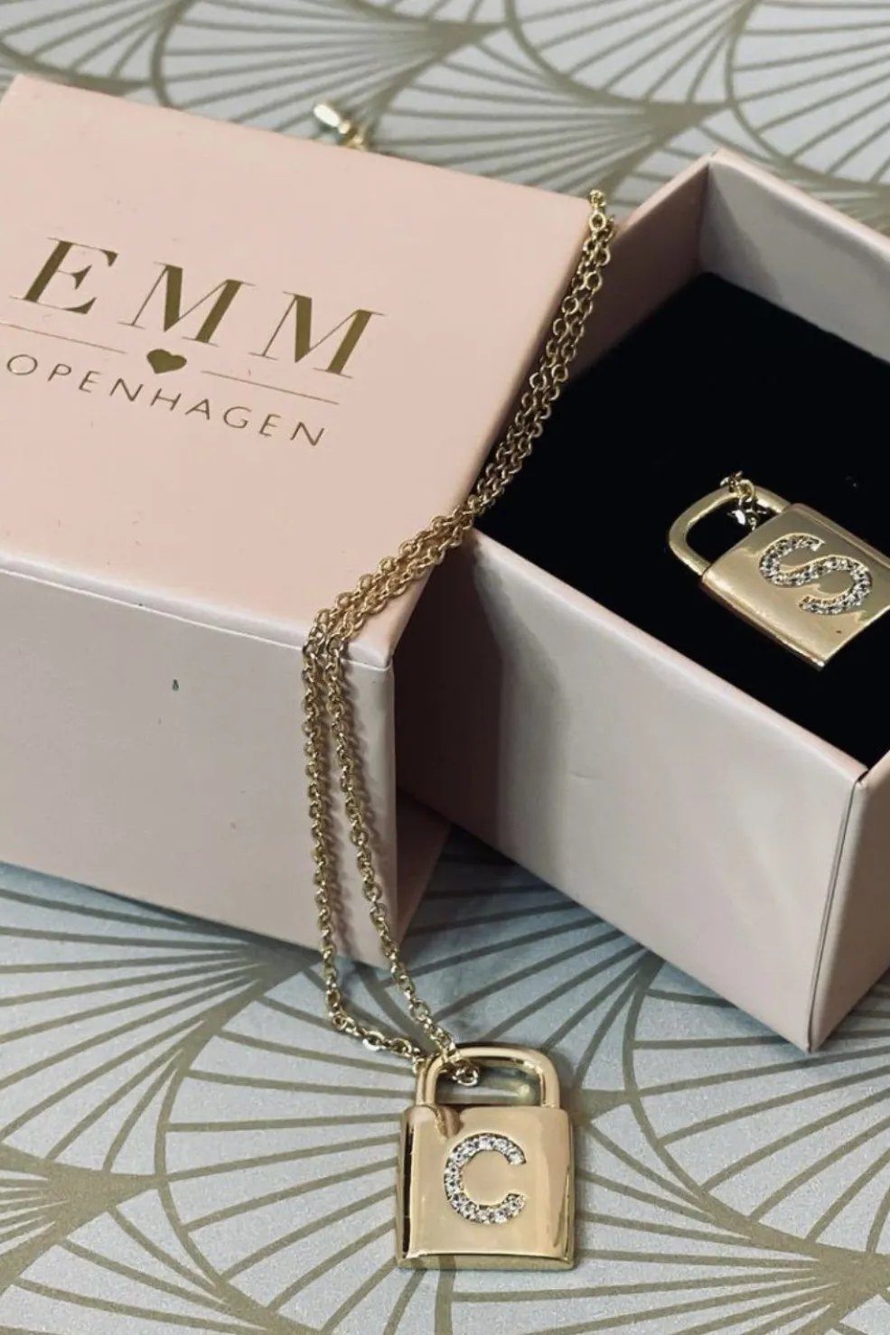 Forgyldt halskæde fra EMM Copenhagen med et låsedesign, hvor du kan vælge dit eget bogstav. Låsen har en zirkonsten på bogstavet og sidder på en kæde.