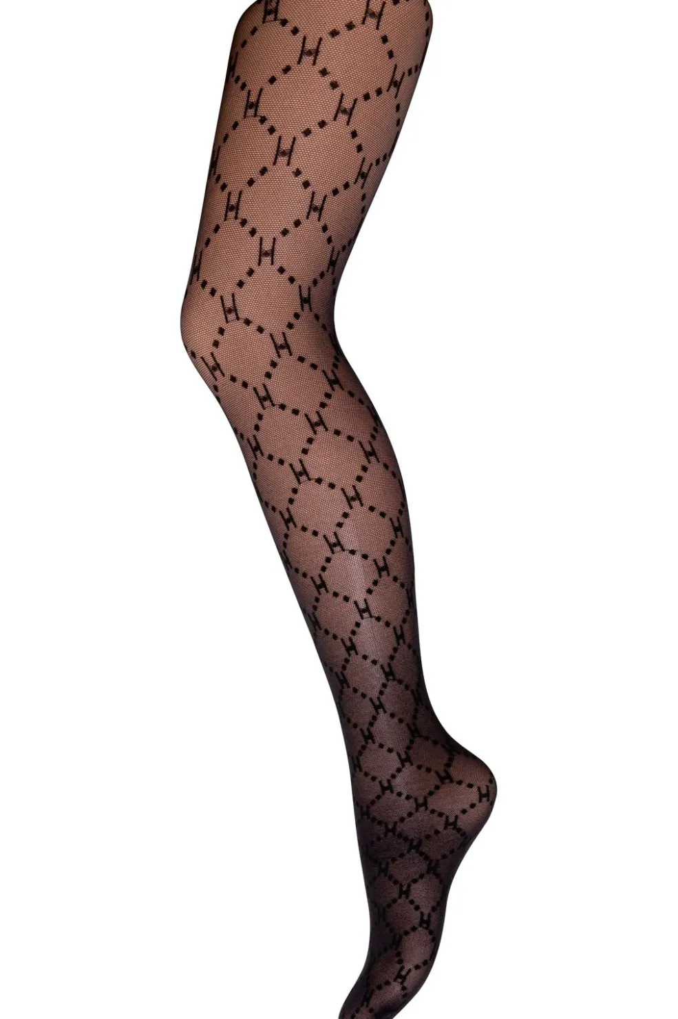 Sorte strømpebukser fra Hype The Detail med et gennemgående logo-mønster. Strømpebukserne har et geometrisk design, der gør dem velegnede til festlige lejligheder.