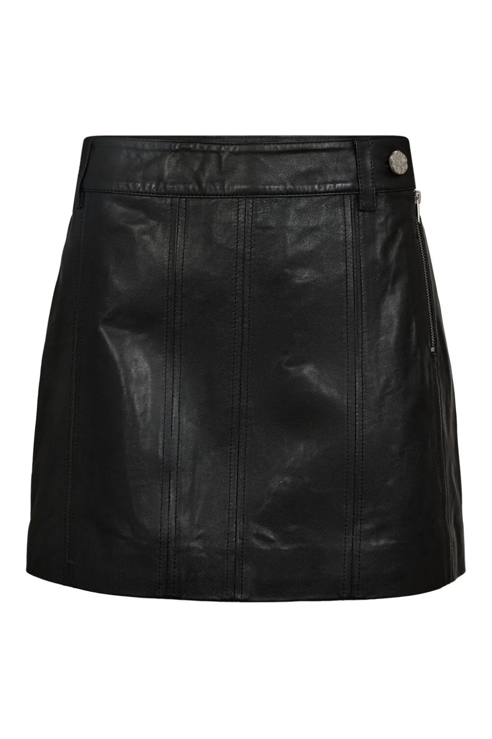 Sort lædernederdel fra Haute L’Amitié, lavet af 100 % læder. Nederdelen har vertikale syningsdetaljer og en almindelig taljehøjde.