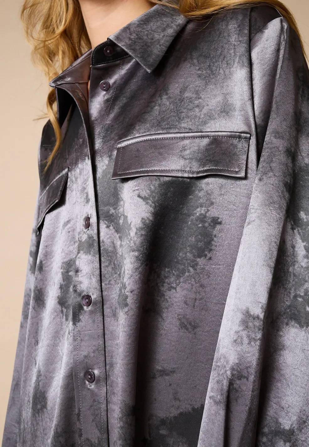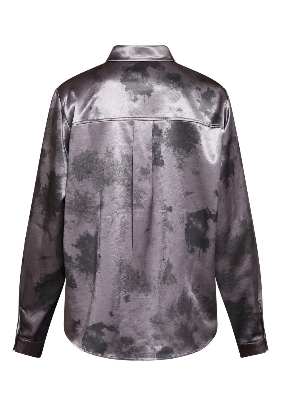 Skjorte fra Love & Divine i grå med et skinnende marmoreret print. Skjorten har en oversized pasform og klassisk skjortekrave.