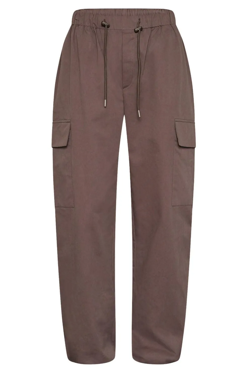 Brune bukser fra Love & Divine, lavet af 100 % bomuld. Bukserne har en høj talje, løs pasform og går ned til anklerne.
