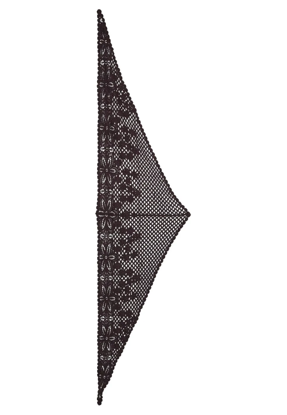 Hæklet tørklæde fra Love & Divine i mørkebrun. Tørklædet har et blomsterlignende hæklet mønster og kan bæres på flere måder.