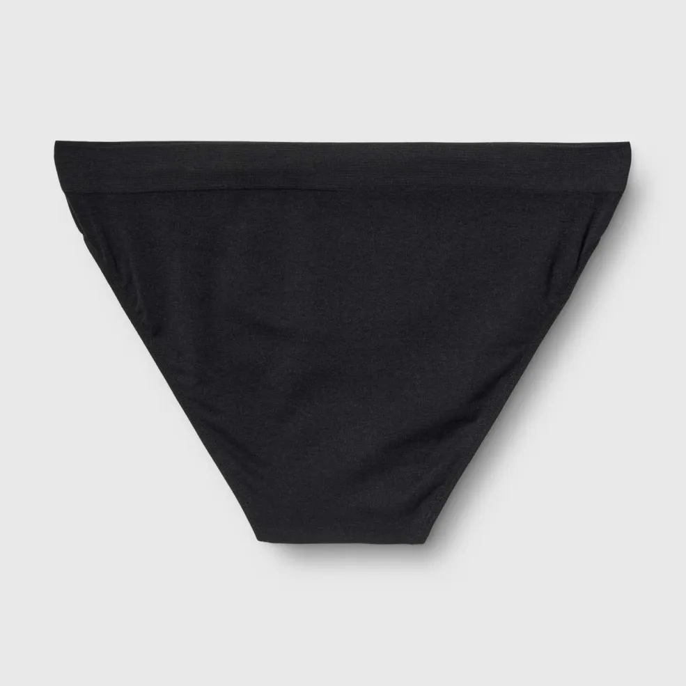 Sort brief med bred linning og brandlogo. Den kombinerer et enkelt design med praktiske detaljer og er lavet i en blød materialeblanding med stræk.