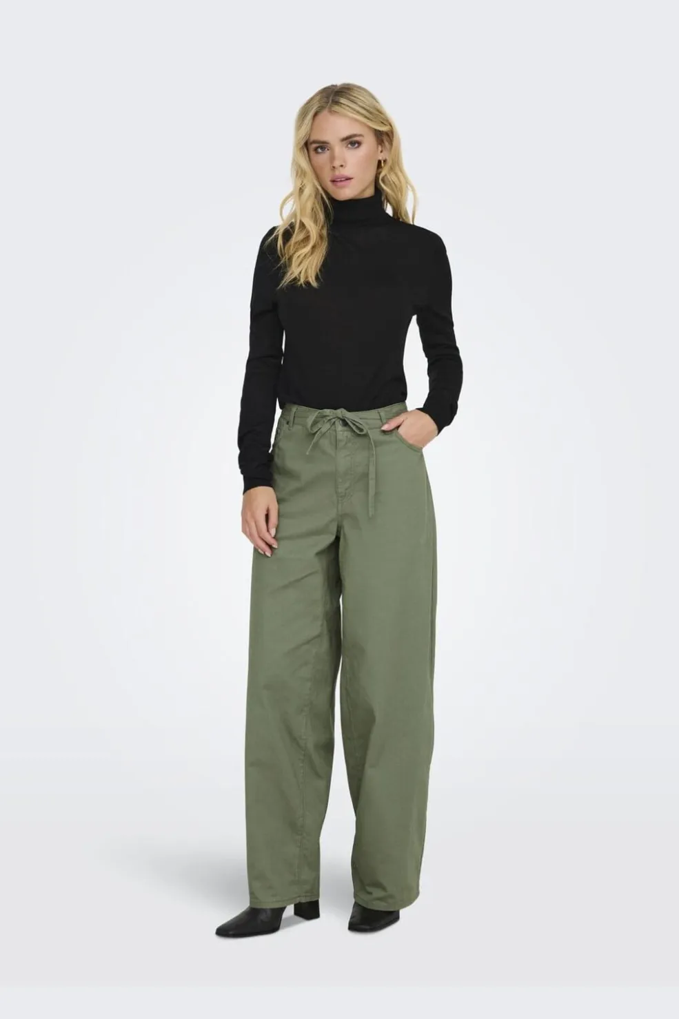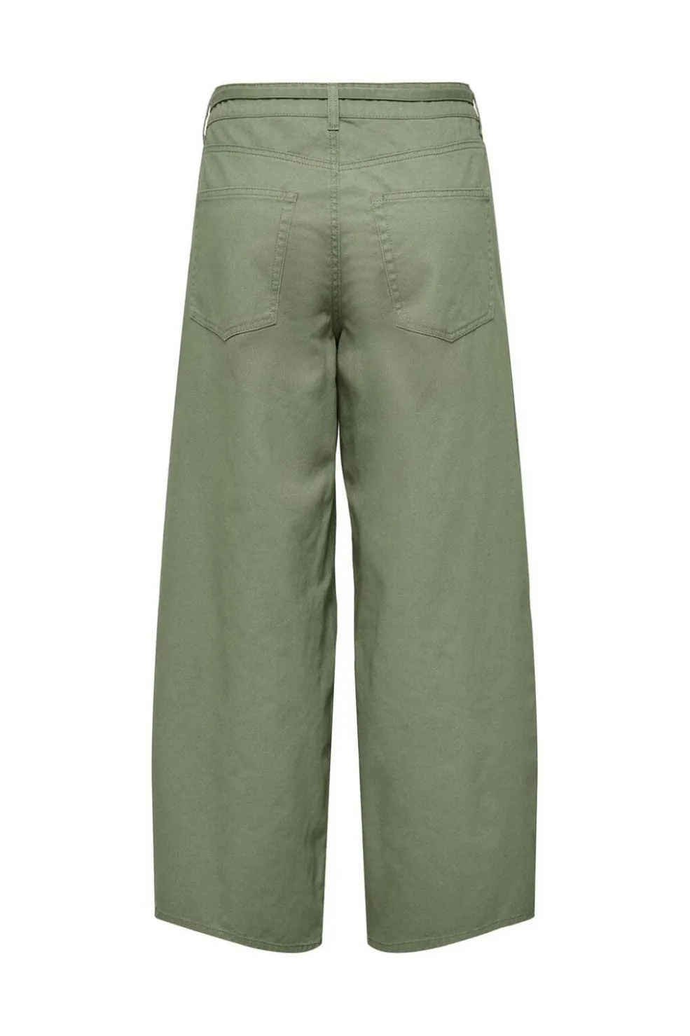 Armygrønne bukser fra JDY med lige pasform. Bukserne har snøre i taljen samt knap- og lynlåslukning. Side- og baglommer giver praktisk opbevaringsplads.