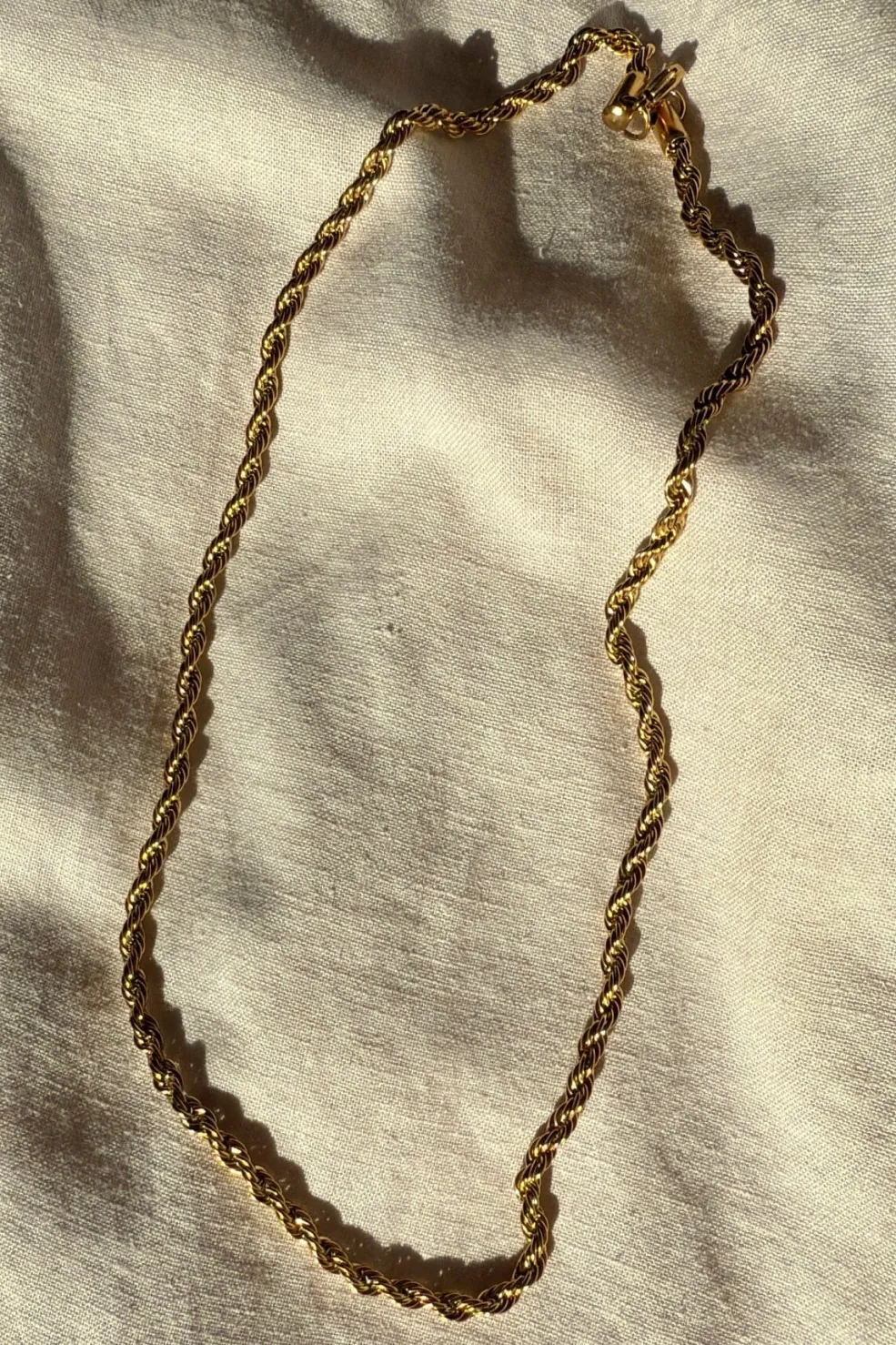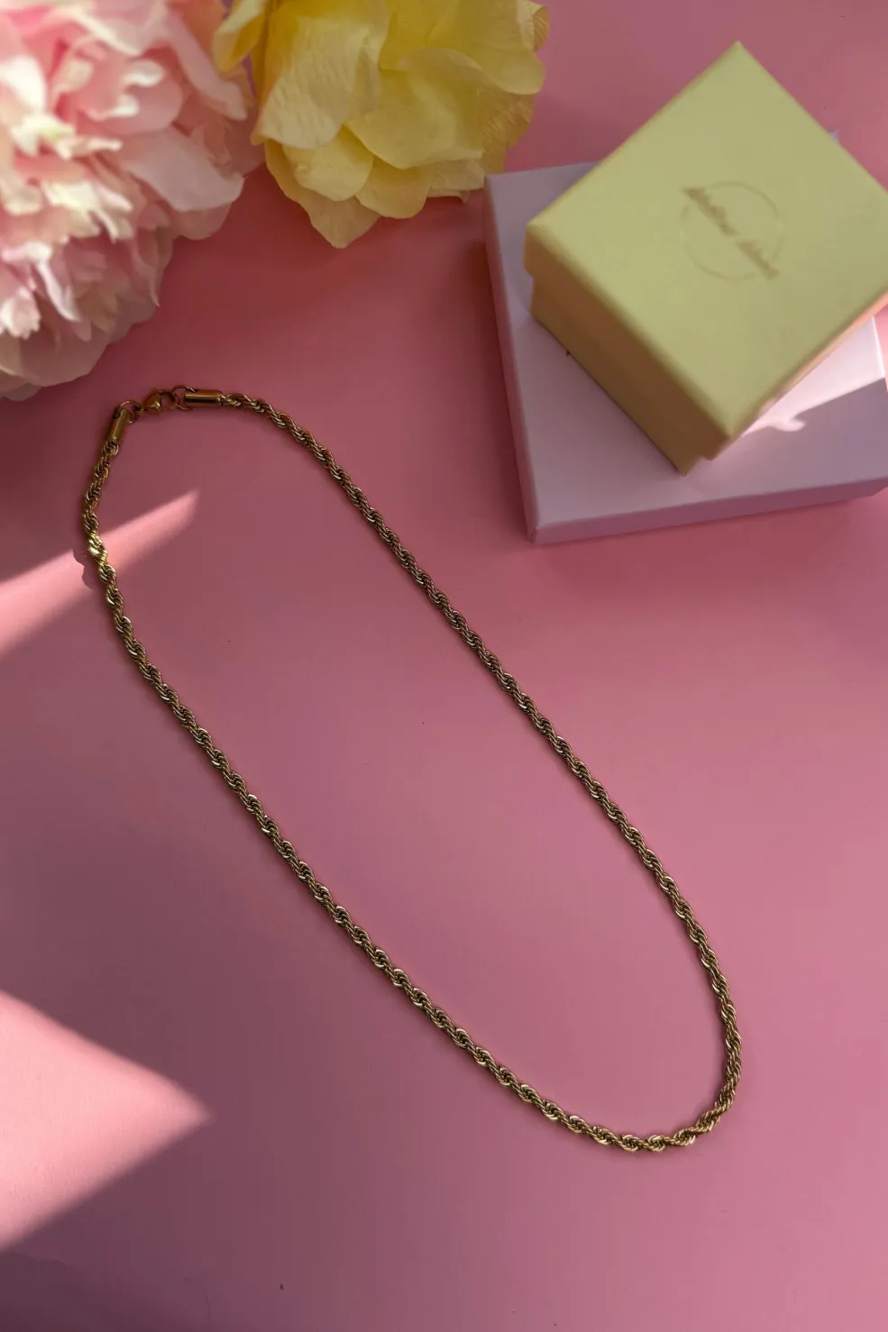 Forgyldt halskæde fra Mellow Moon med snoet design. Kæden har et klassisk rebkæde, der giver smykket et håndlavet præg.