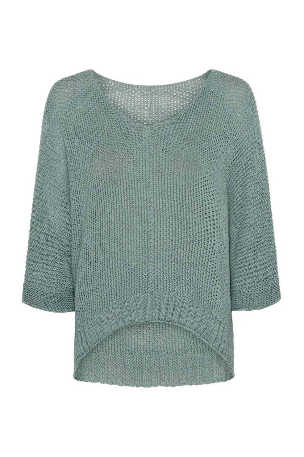 Strikket bluse fra Marta Du Chateau i khaki grøn. Den har et åbent strikkemønster med v-halsudskæring og trekvartærmer. Designet har en oversized pasform med let buet kant.