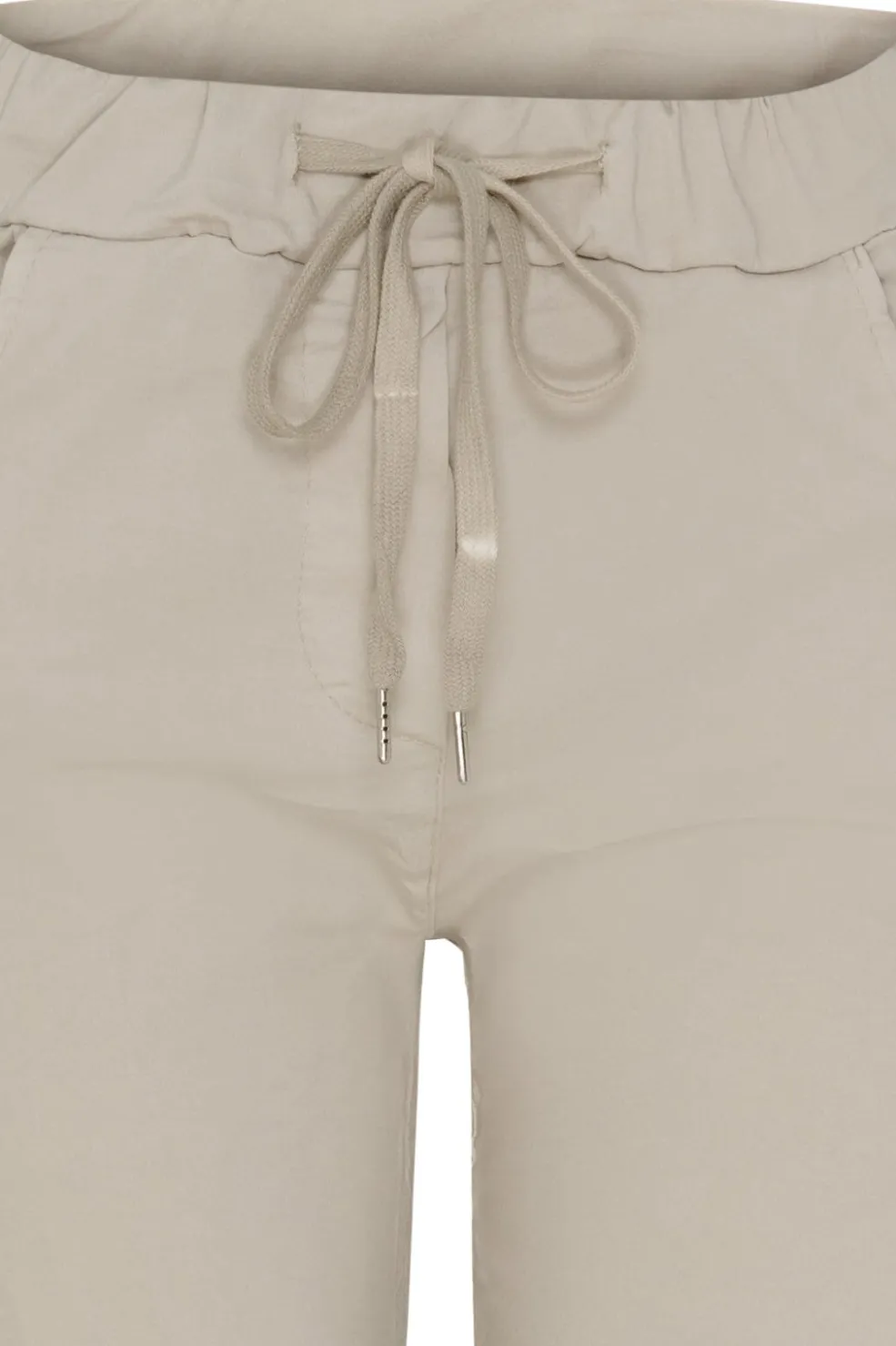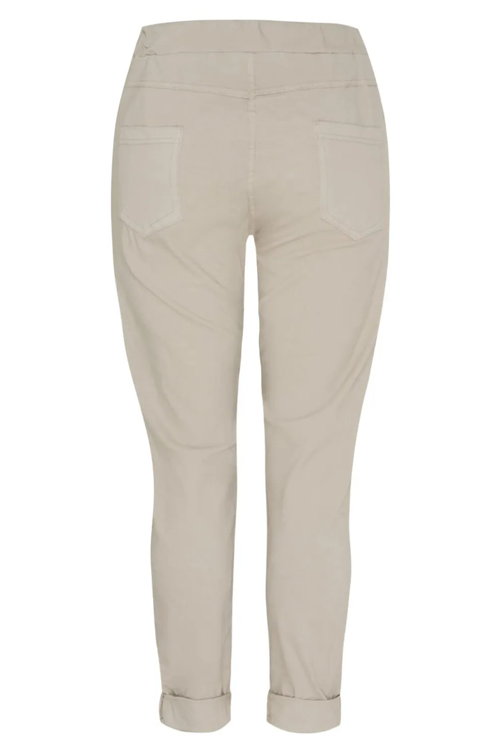 Beige bukser fra Marta Du Chateau med loose fit. Bukserne har en elastisk talje med snøre samt fire praktiske lommer fordelt på for- og bagsiden.