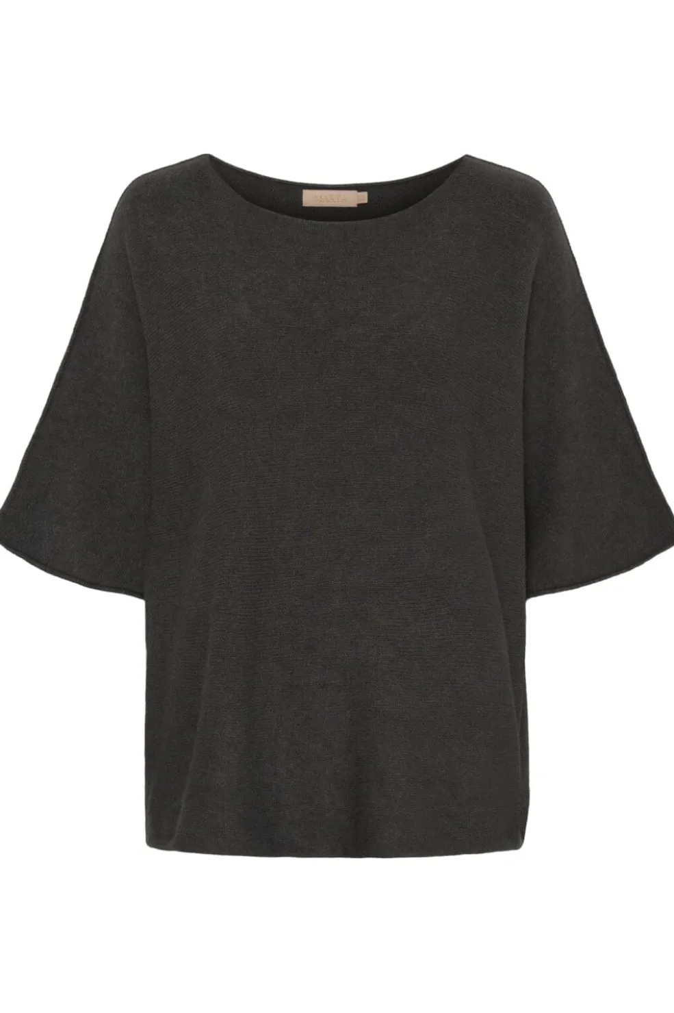 Mørkegrå striktrøje fra Marta Du Chateau med rund halsudskæring og 3/4-ærmer. Den løse pasform og det ensfarvede design gør den nem at style.