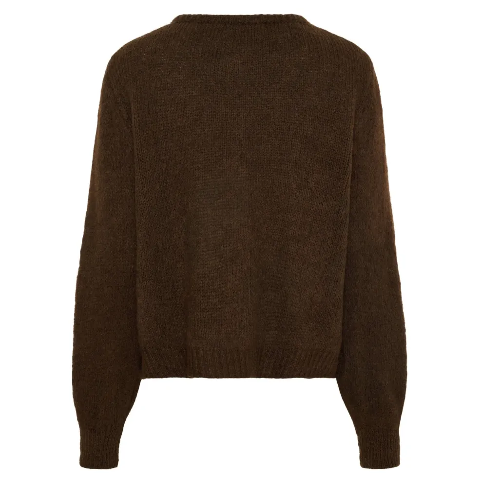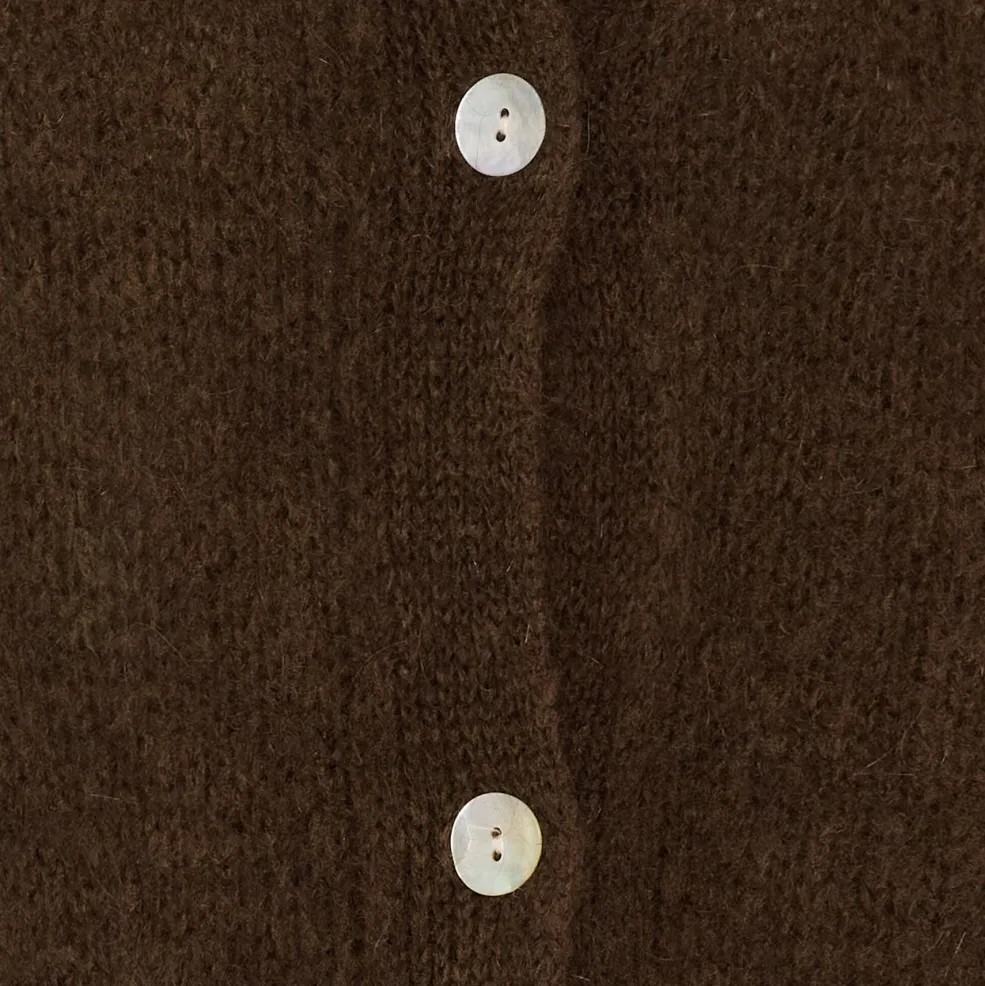 Brun strikket cardigan fra Marta Du Chateau med rund halsudskæring. Cardiganen har knapper foran og er lavet af en blød blanding af mohair og uld.