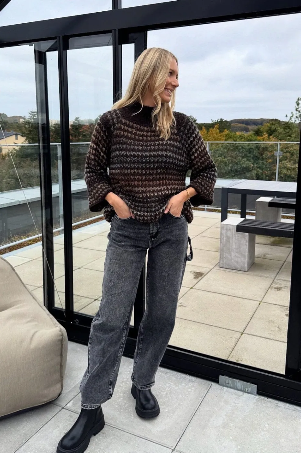 Materiale: 38% Uld, 32% Akryl, 22% Polyester, 8% Viscose