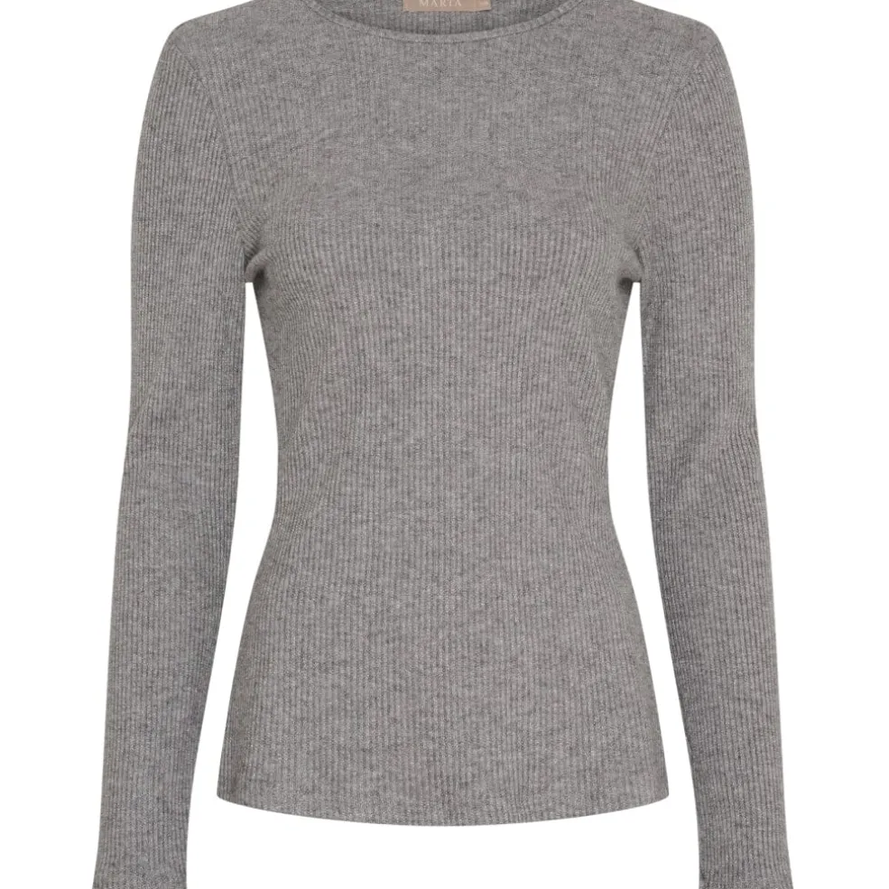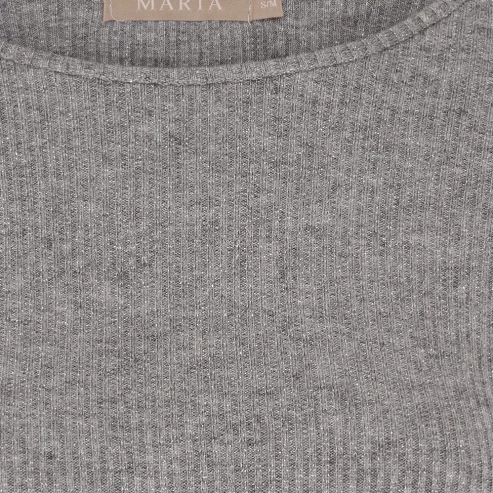 Grå langærmet t-shirt fra Marta du Château i ribbet kvalitet. Materialet indeholder lurex, som giver et diskret glimmer.