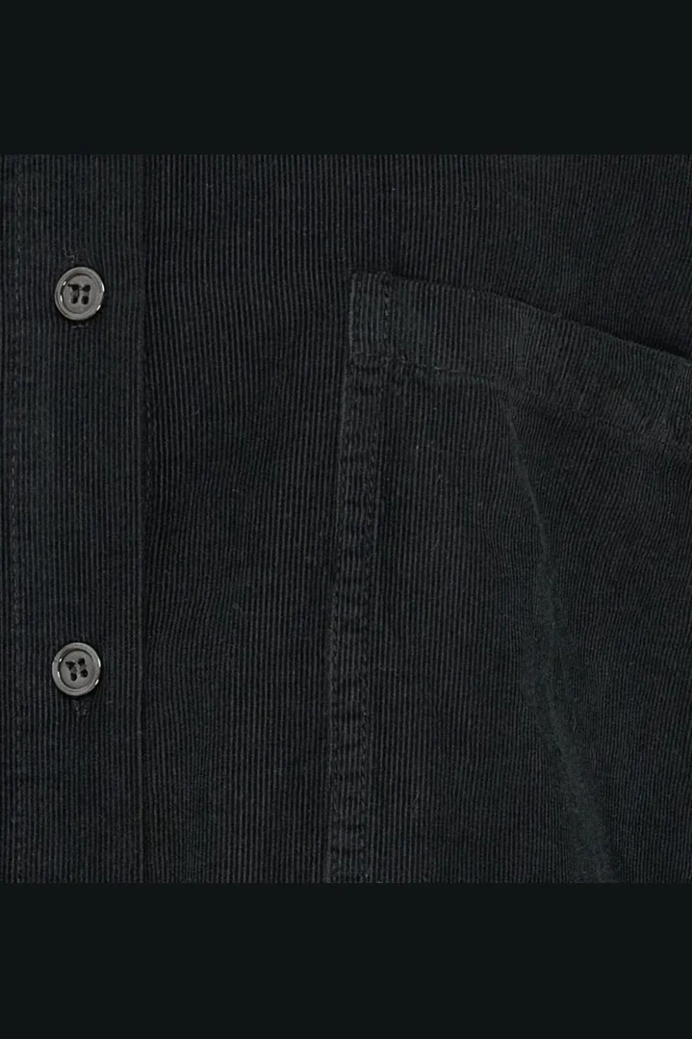 Sort skjorte fra Marta Du Chateau, lavet af babyfløjl i 100 % bomuld. Skjorten har en oversized pasform med lange ærmer og en klassisk krave.