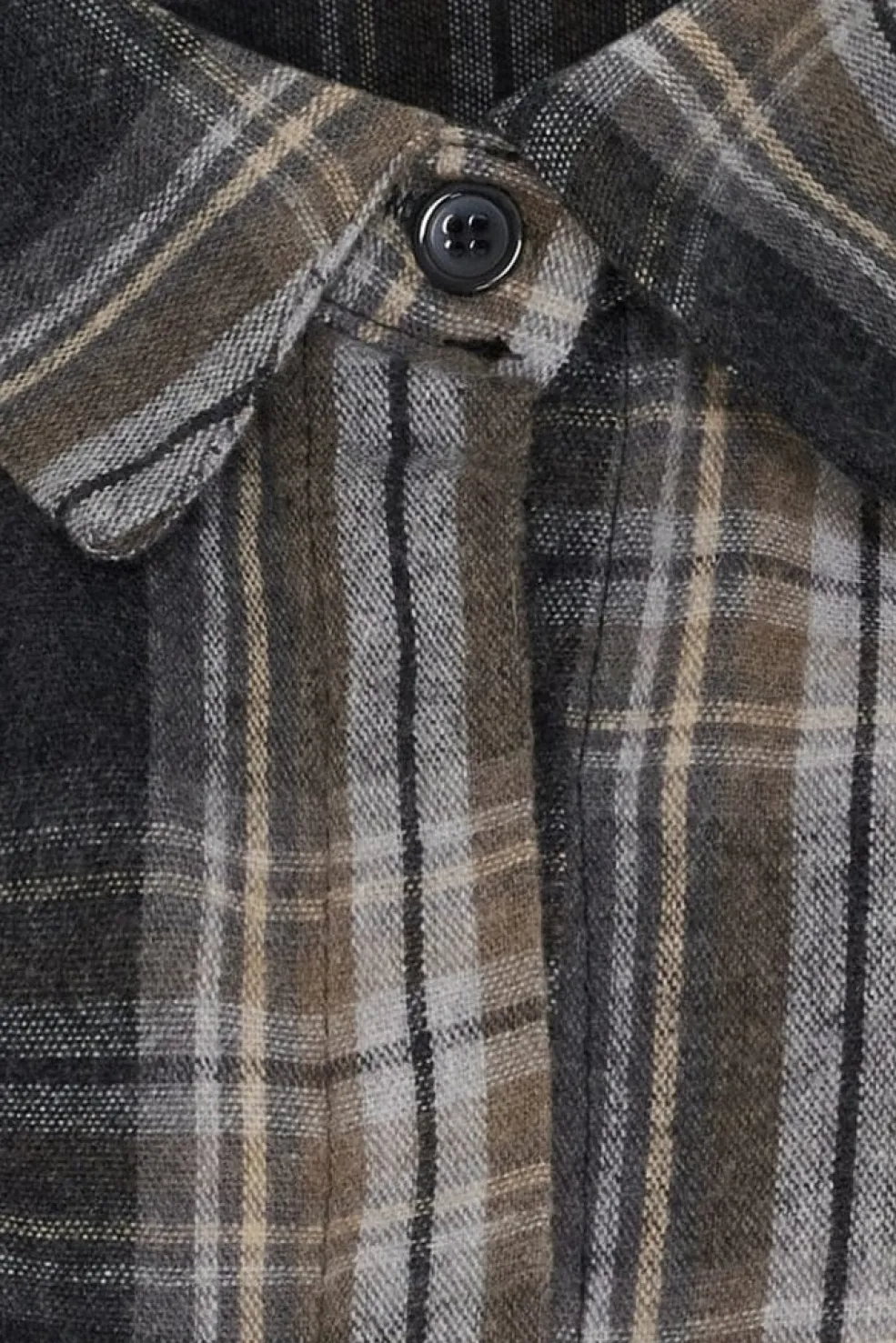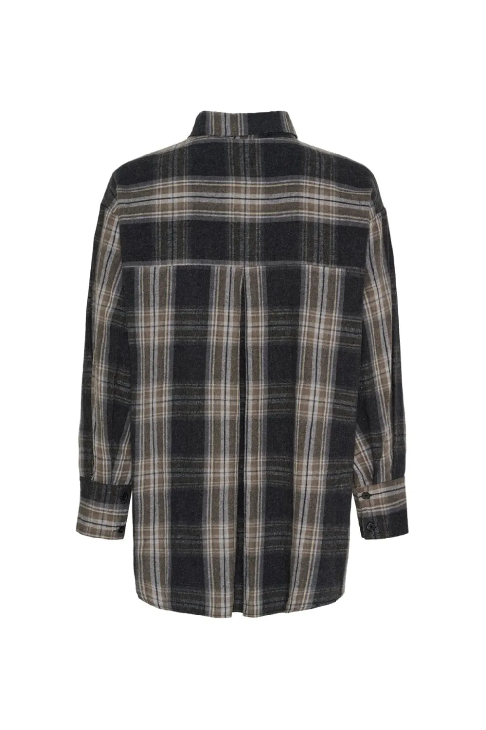 Ternet skjorte fra Marta Du Chateau i grå og brune nuancer. Den har en oversized pasform med skjortekrave og knaplukning.