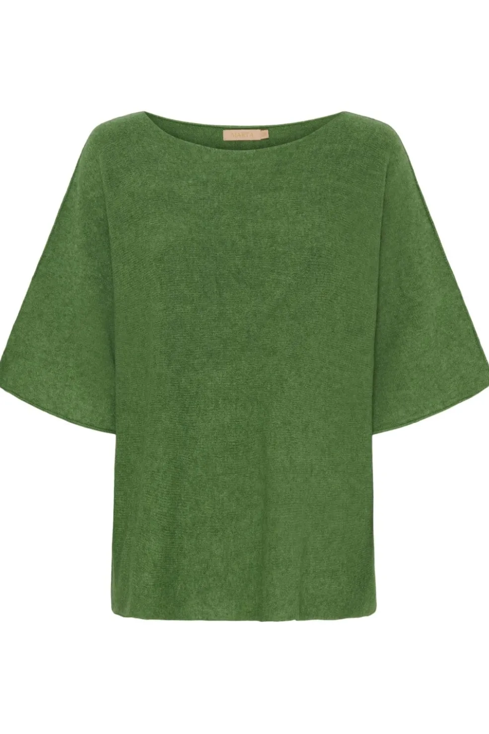 Strikbluse fra Marta Du Chateau i khaki grøn. Den løse strik har korte ærmer og en rund halsudskæring, der giver en afslappet pasform.