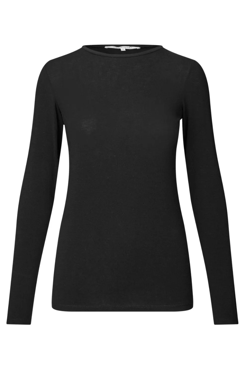 Sort langærmet t-shirt fra Second Female. T-shirten har en rund halsudskæring og en tætsiddende pasform.