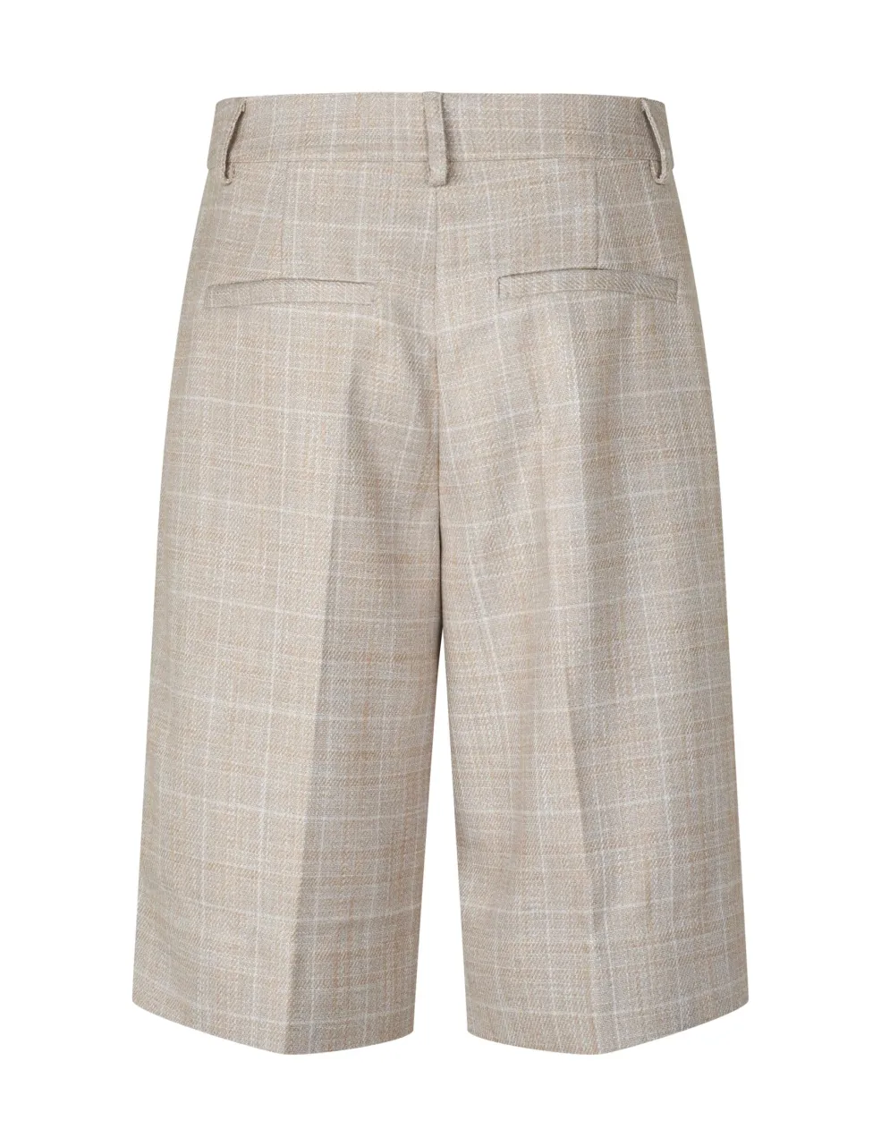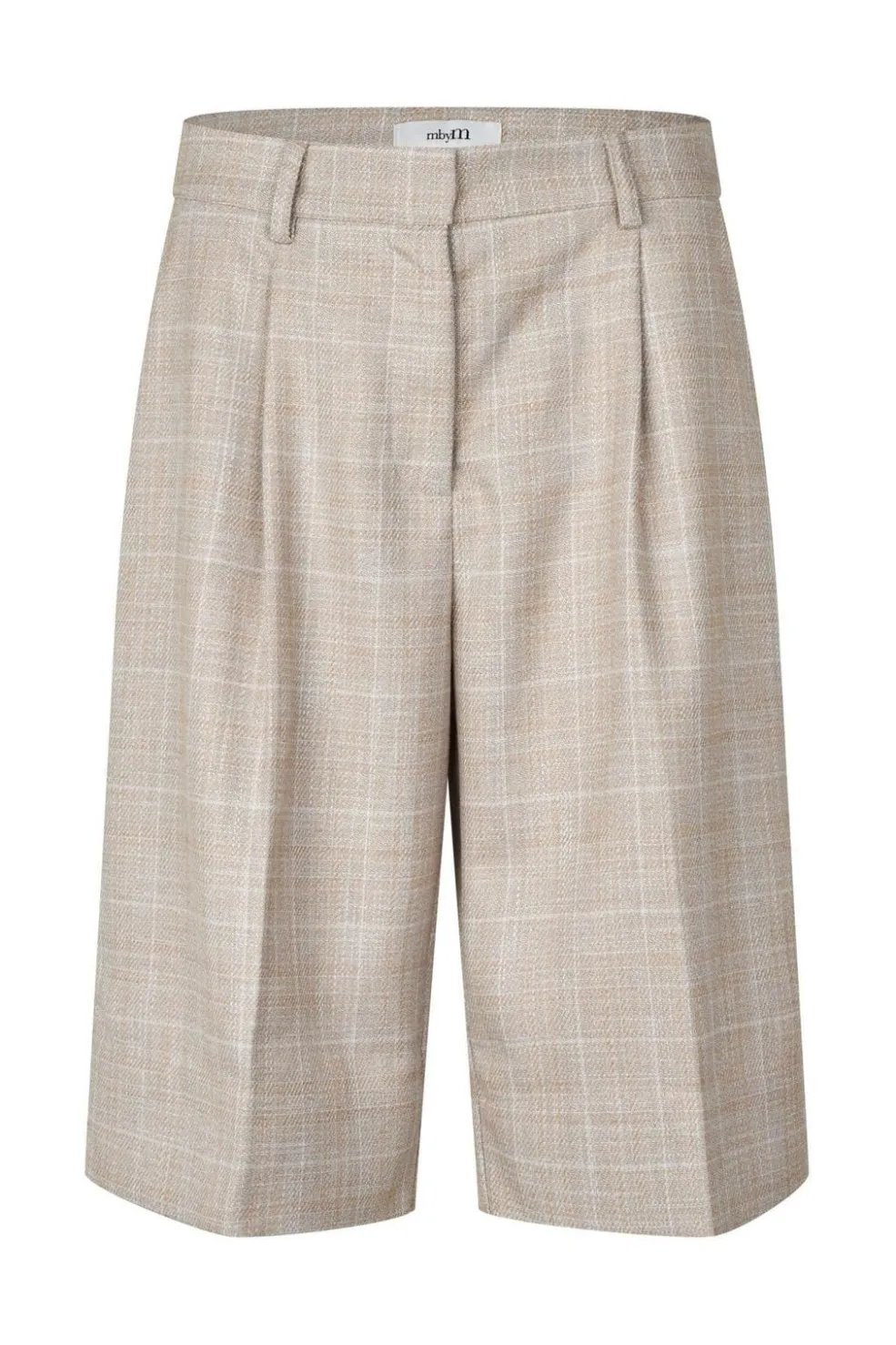 Shorts fra MbyM i beige med et ternet mønster. De har en løs pasform og en høj talje, der går til knæene.
