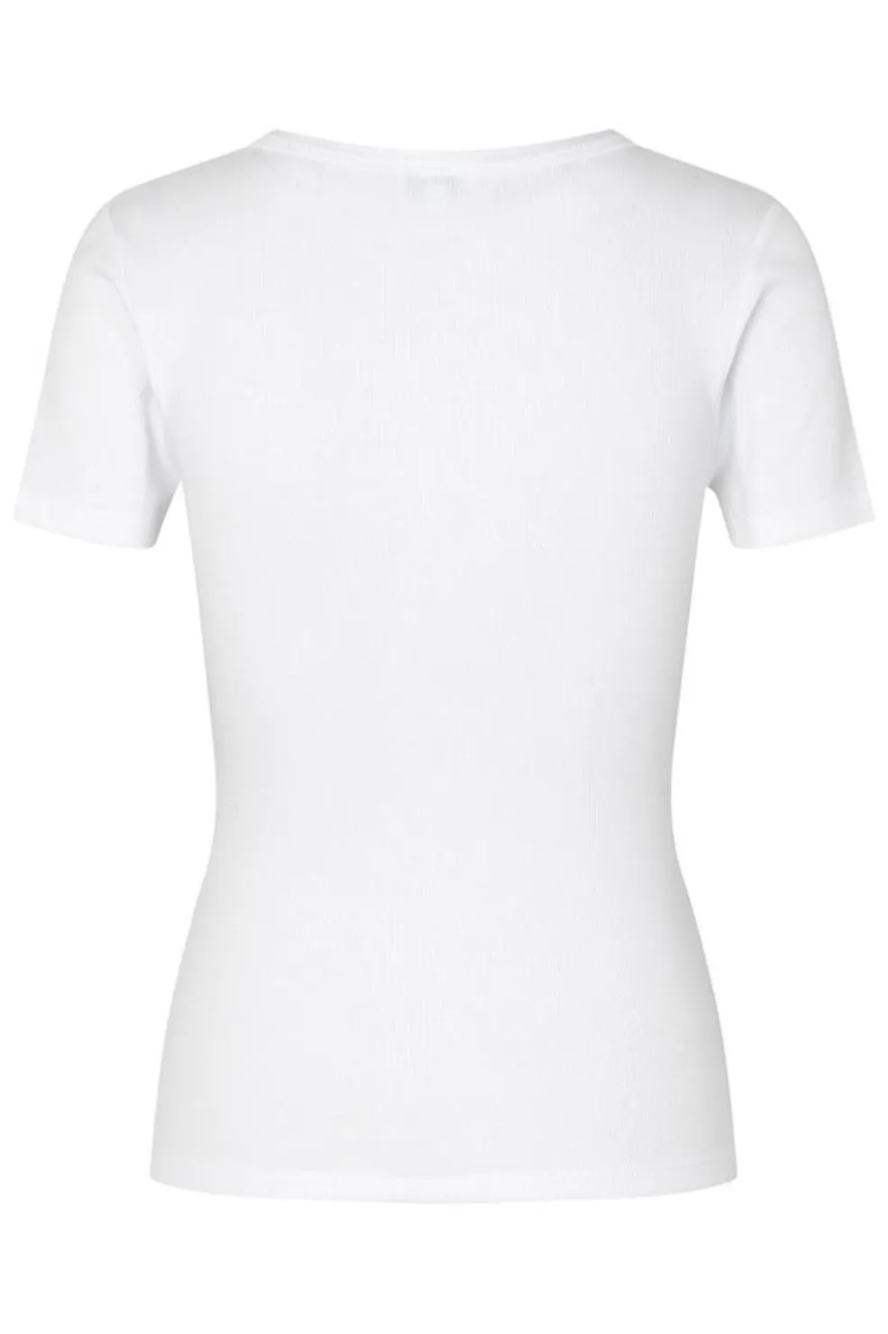 Hvid t-shirt fra MbyM med rund halsudskæring og korte ærmer. En enkel t-shirt i et rent design med fokus på komfort og holdbarhed.