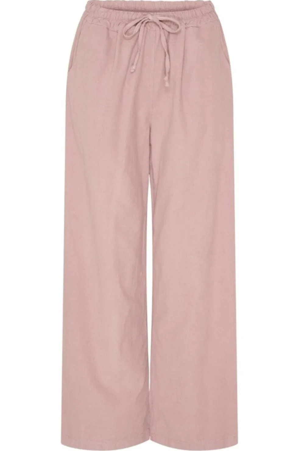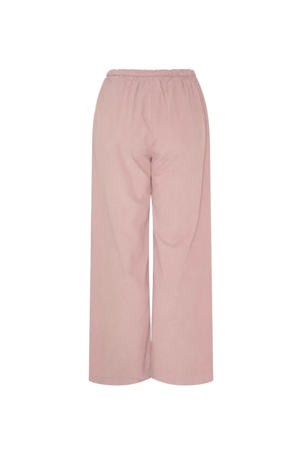 Lyserøde bukser fra Marta Du Château, lavet af babyfløjl i 100 % bomuld. Den ensfarvede lyserøde nuance giver bukserne et afslappet udtryk.