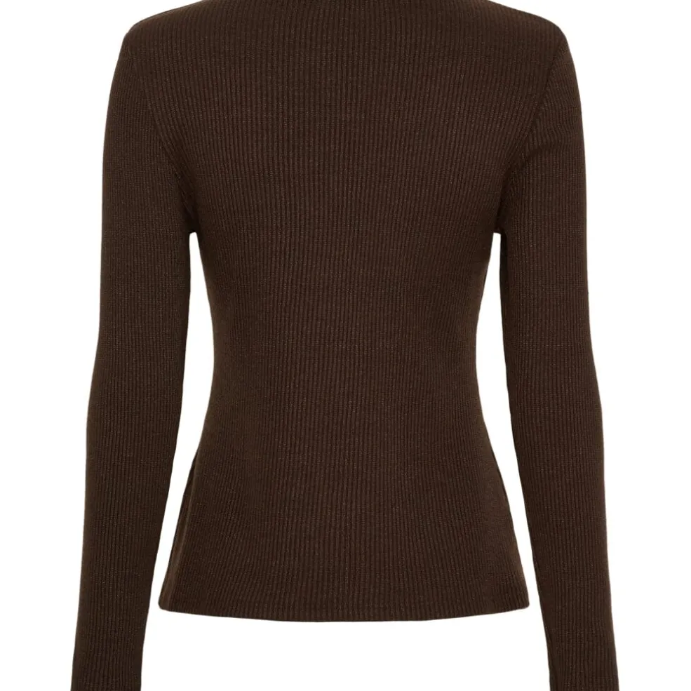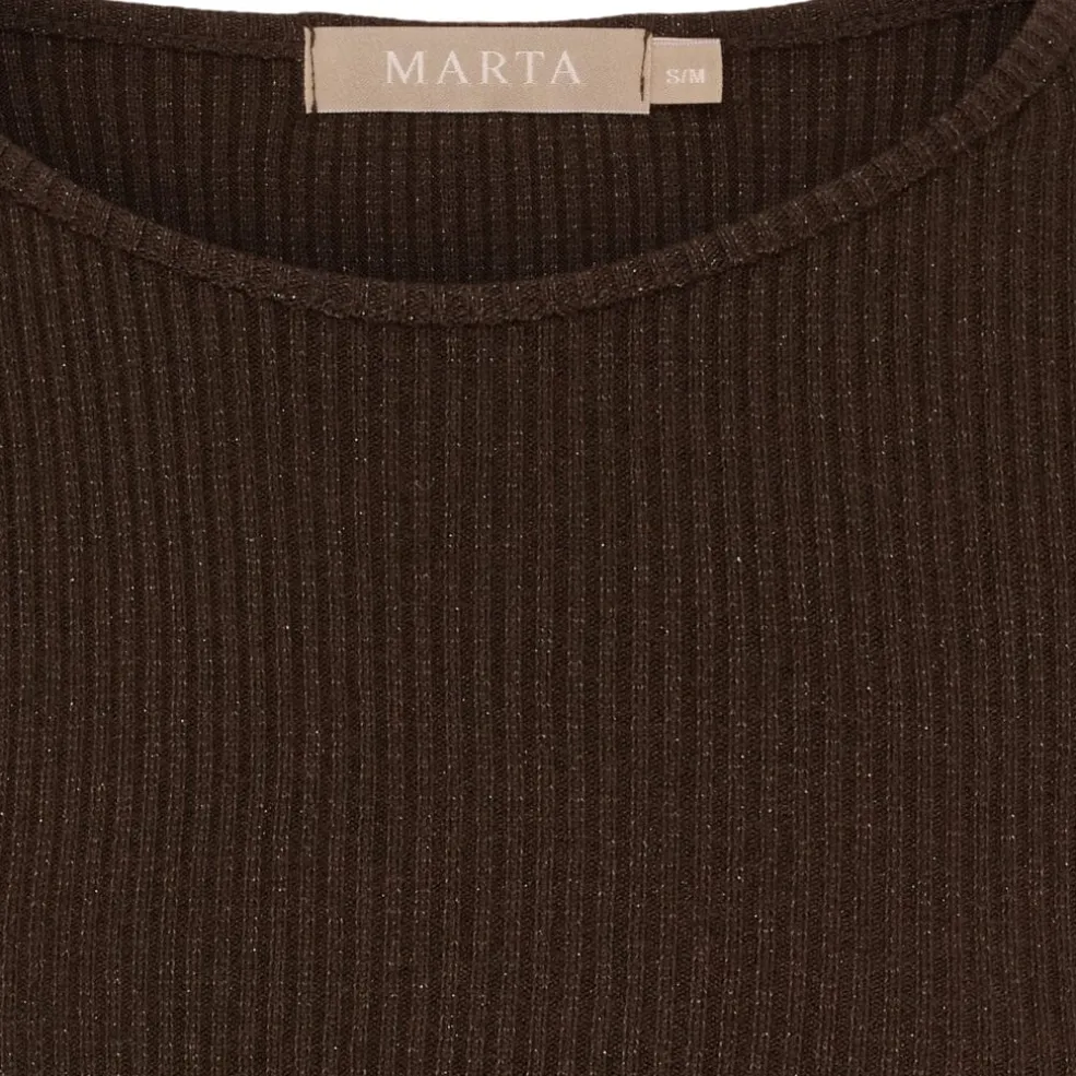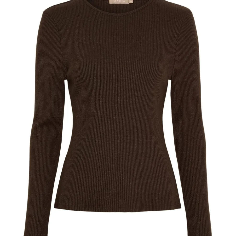 Brun langærmet t-shirt fra Marta du Château, lavet i ribbet kvalitet. T-shirten har en tætsiddende pasform og en rund halsudskæring.