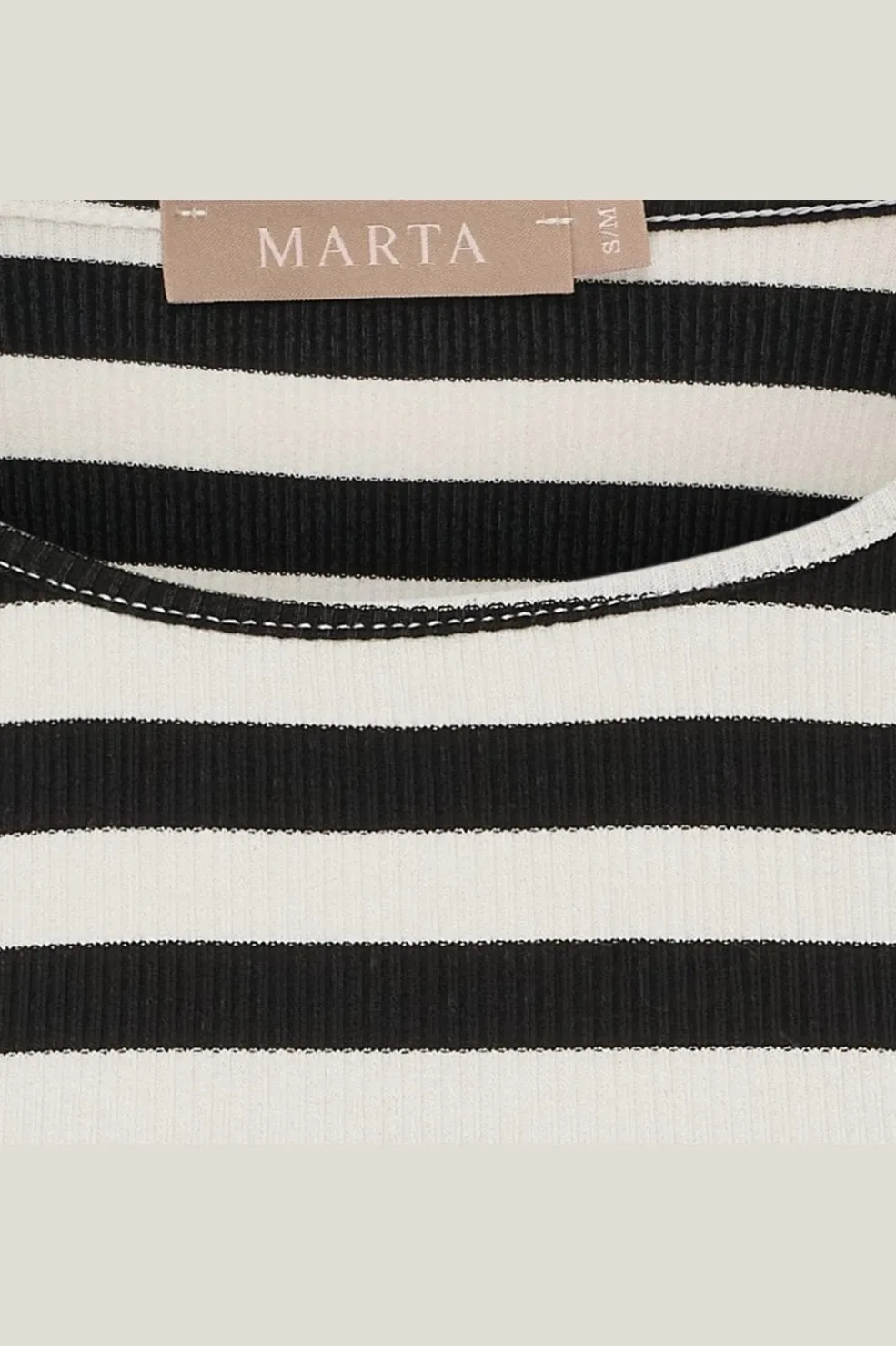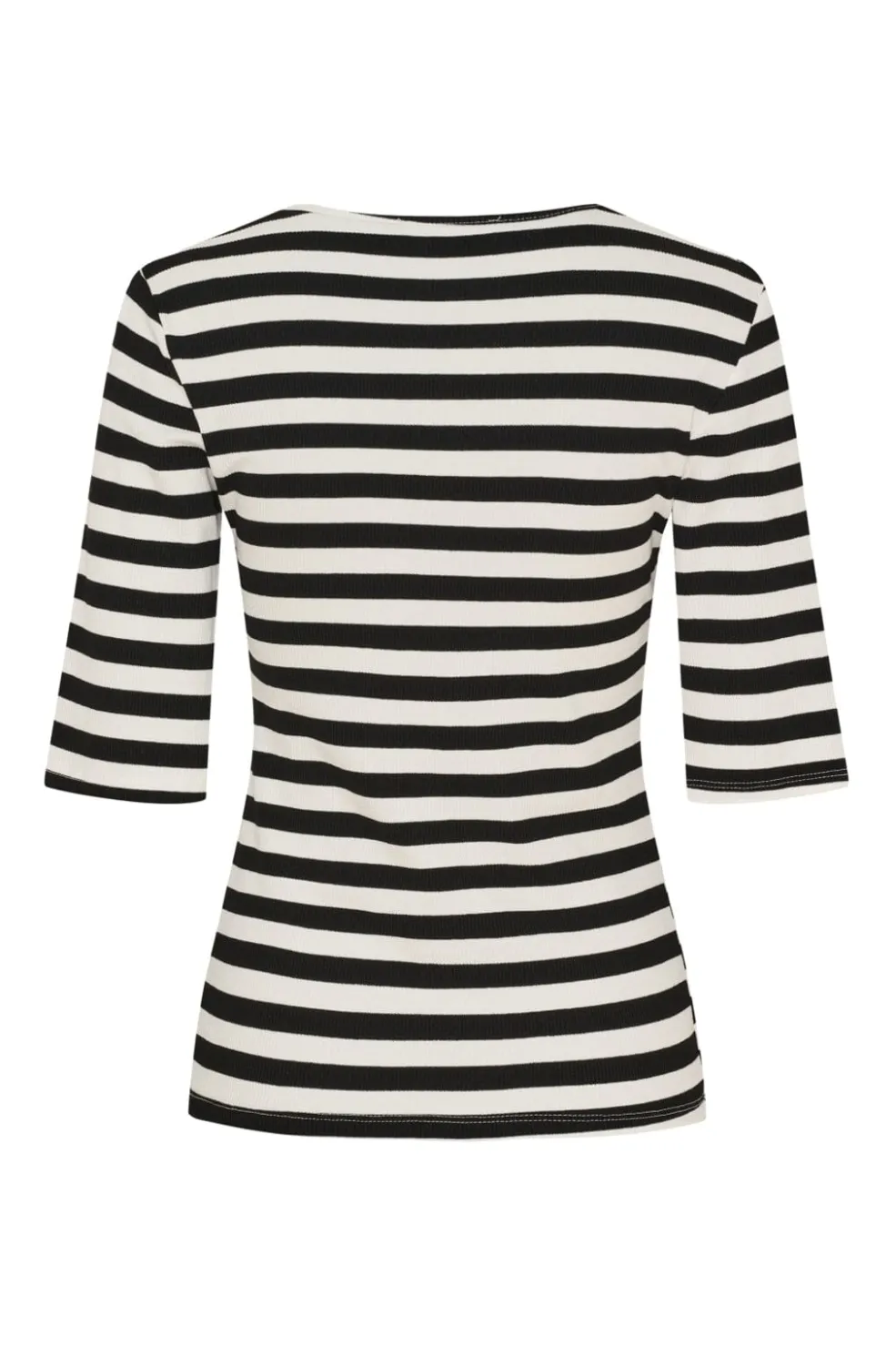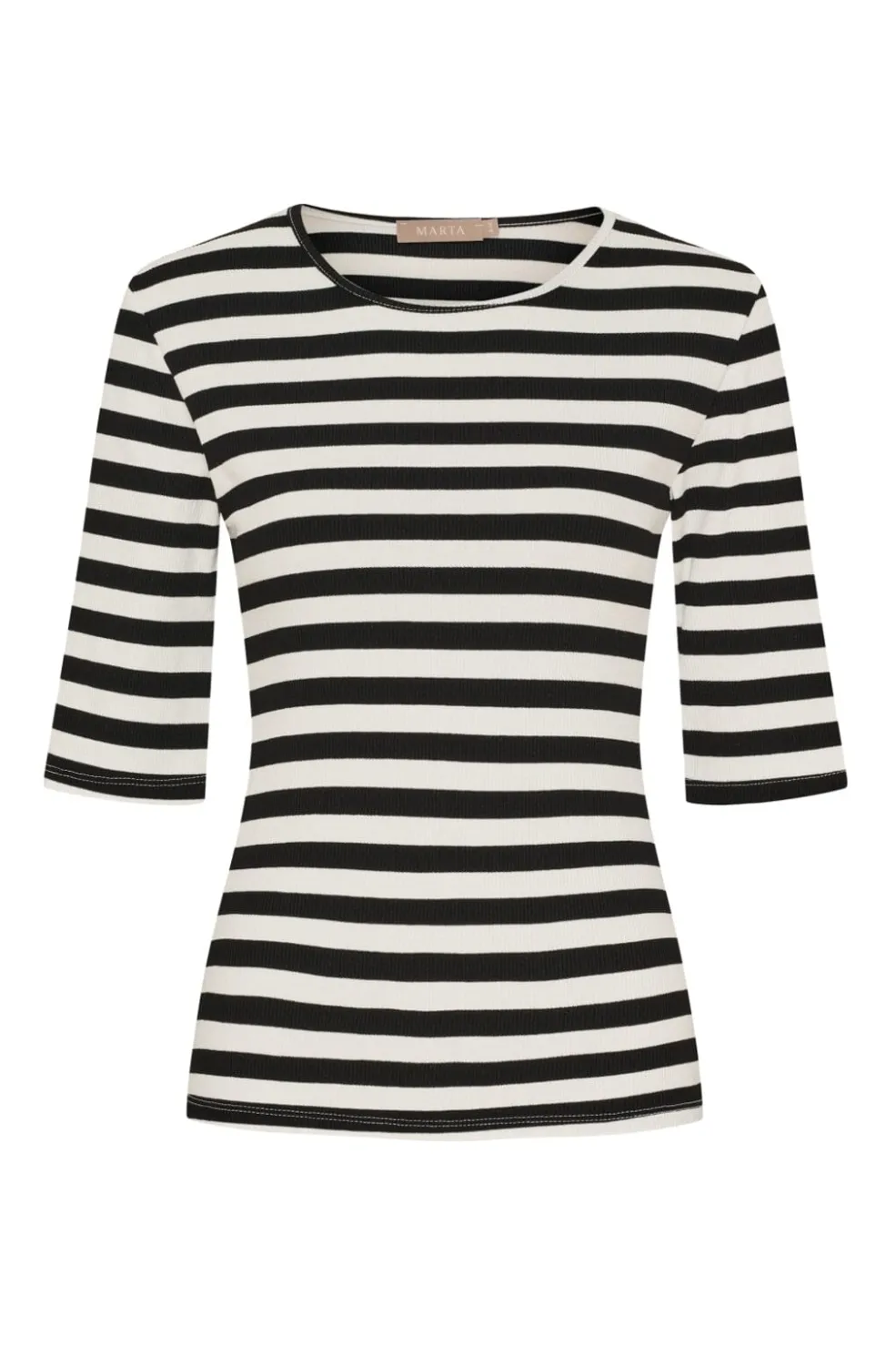 Stribet t-shirt fra Marta Du Chateau i sort og hvid. T-shirten har 3/4-ærmer, en rund halsudskæring og en tætsiddende pasform.