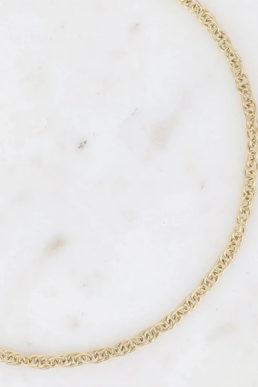 Forgyldt halskæde fra Mellow Moon med et fint mesh-mønster i 2 mm tykkelse. Den slanke kæde har en let struktur og en gylden finish.
