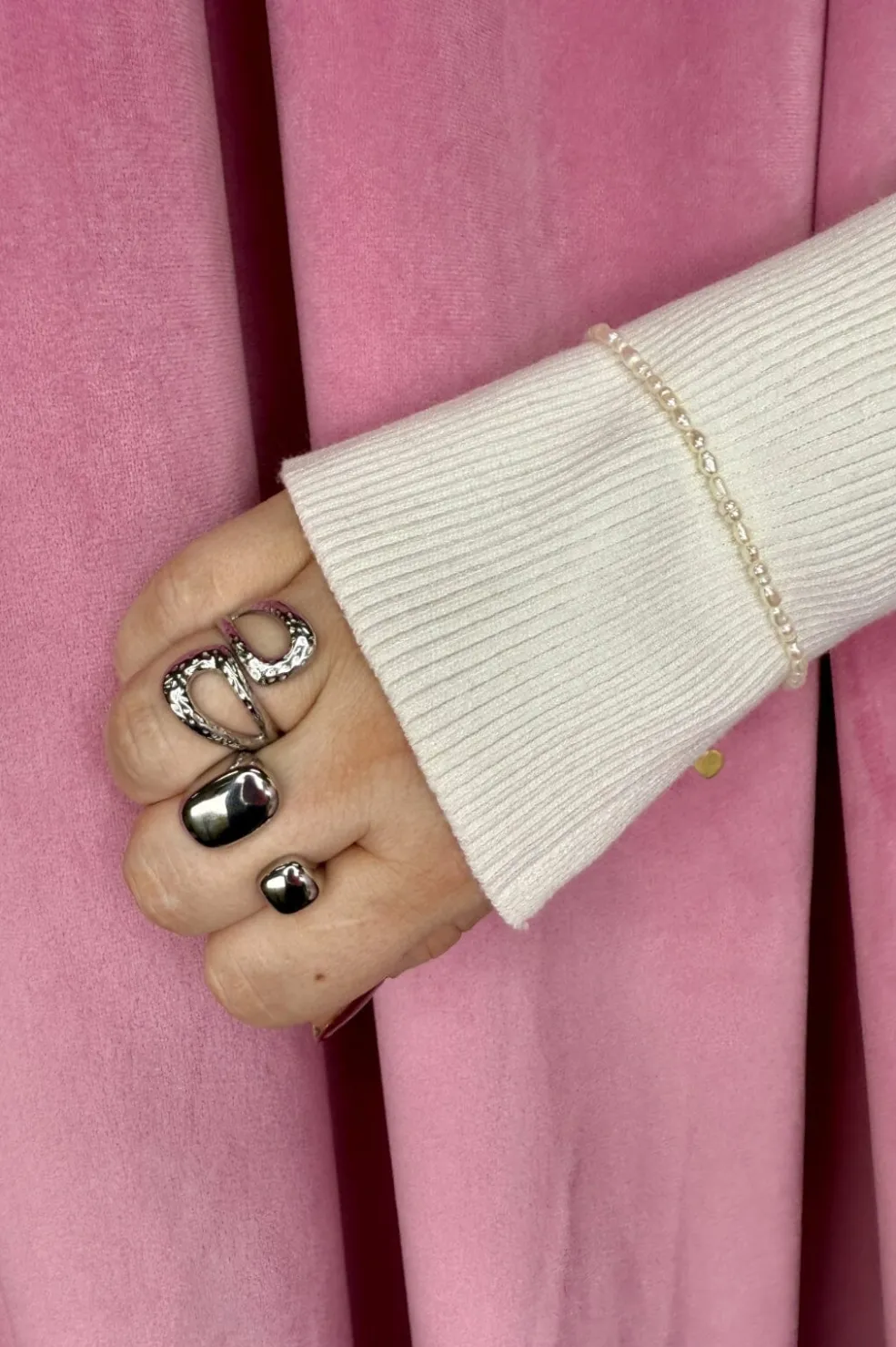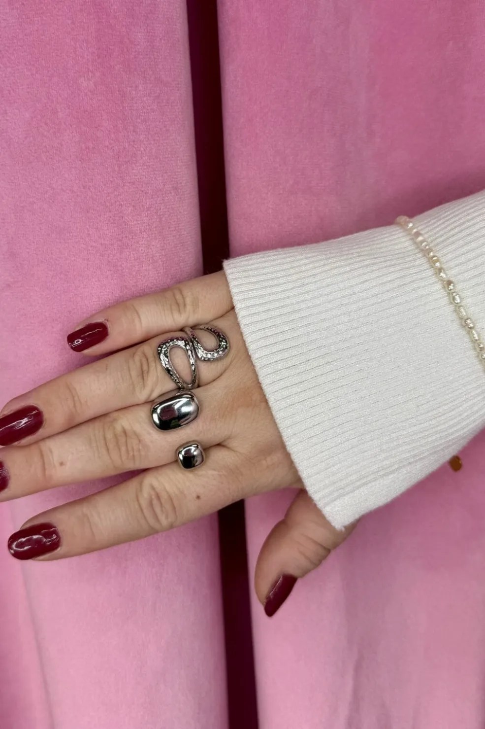 Forsølvet ring fra Mellow Moon med et rundt design i rustfrit stål. Ringen har en blank overflade og en højde på 16 mm.