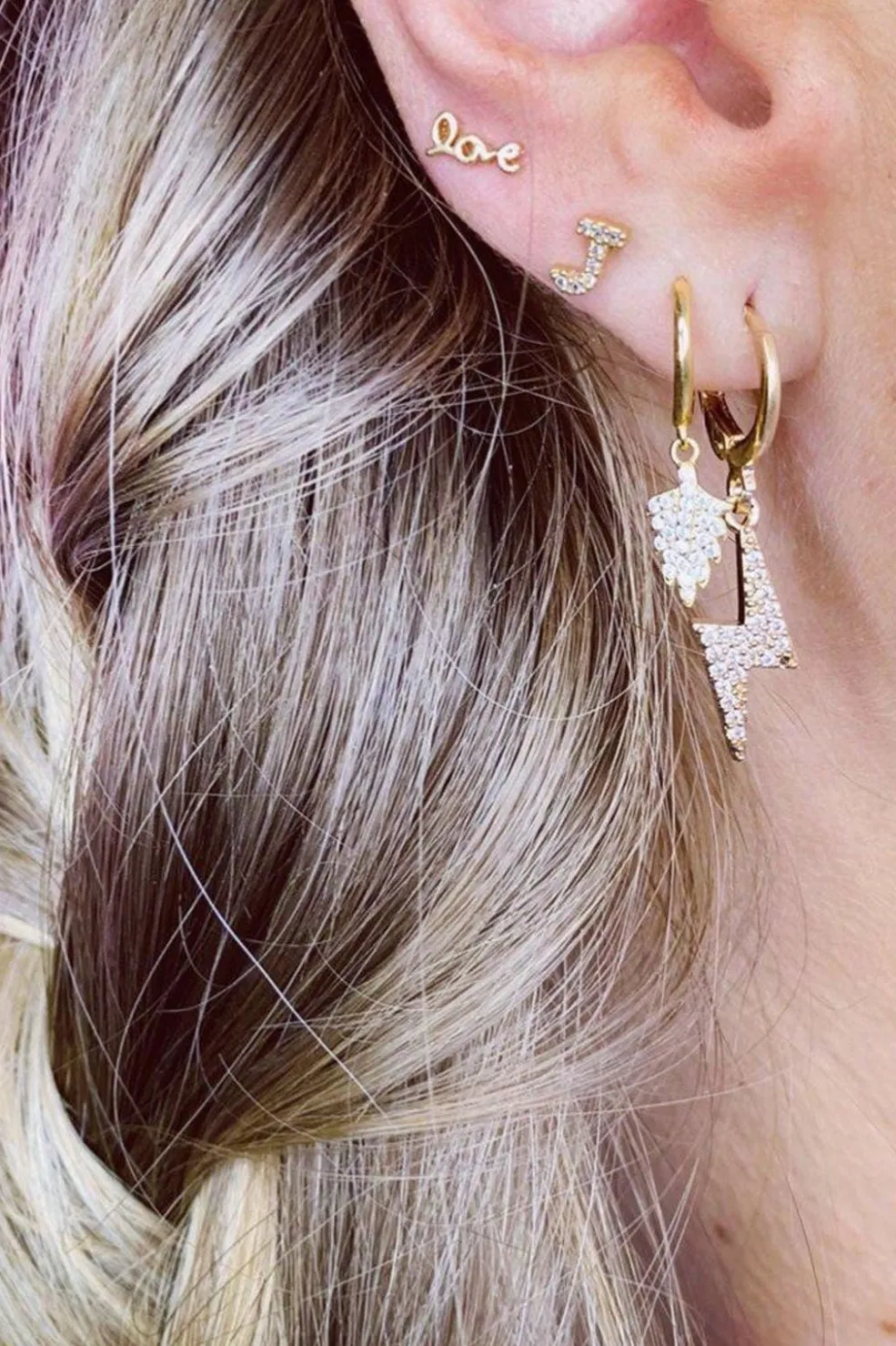 Kreoler fra Mellow Moon med lynformede vedhæng. Øreringene er lavet af forgyldt messing med små sten, der giver et funklende udtryk. De er nikkel- og blyfri.