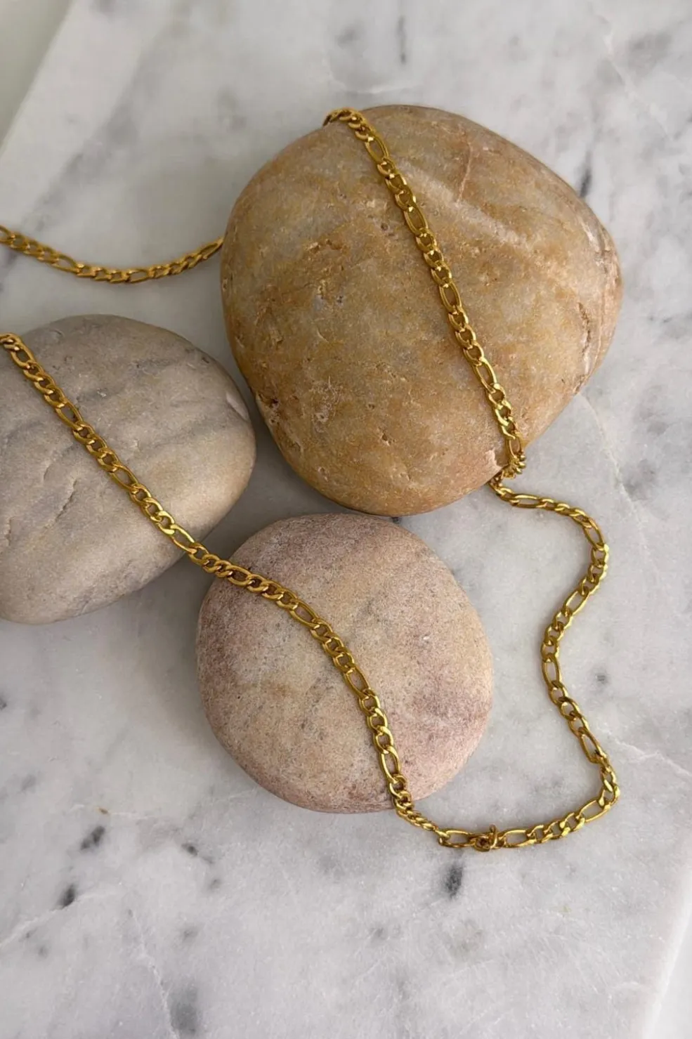 Forgyldt halskæde fra Mellow Moon med aflange led. Kæden har en klassisk kædestruktur med en blank gylden finish, der giver et rent og enkelt udtryk.