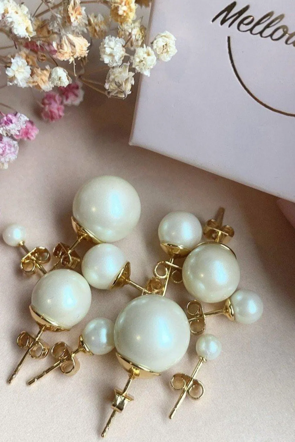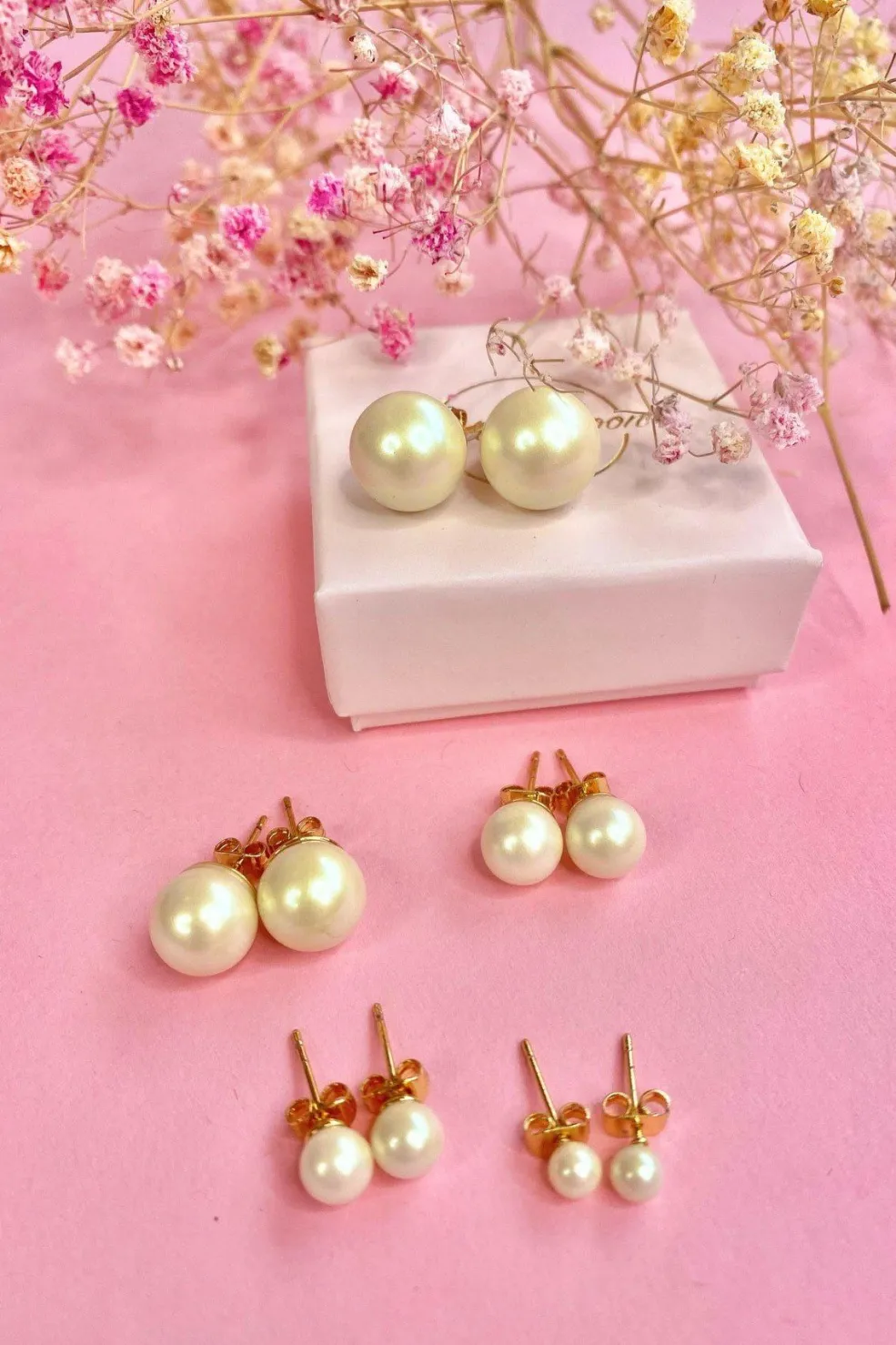 Perleøreringe fra Mellow Moon med forgyldt finish og cremehvide glasperler. Øreringene fås i forskellige perlestørrelser fra 4 til 12 millimeter, så de kan tilpasses den enkeltes stil.