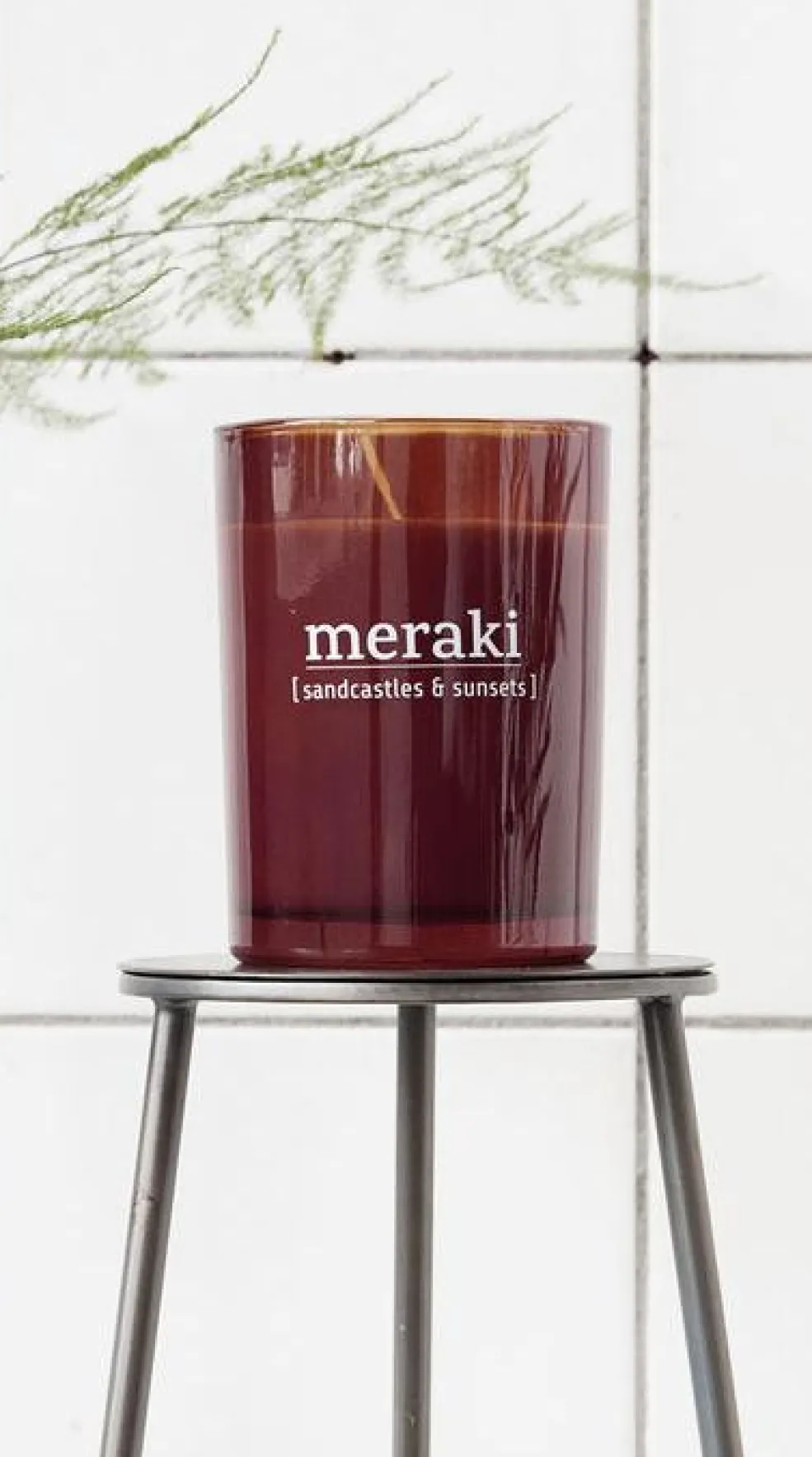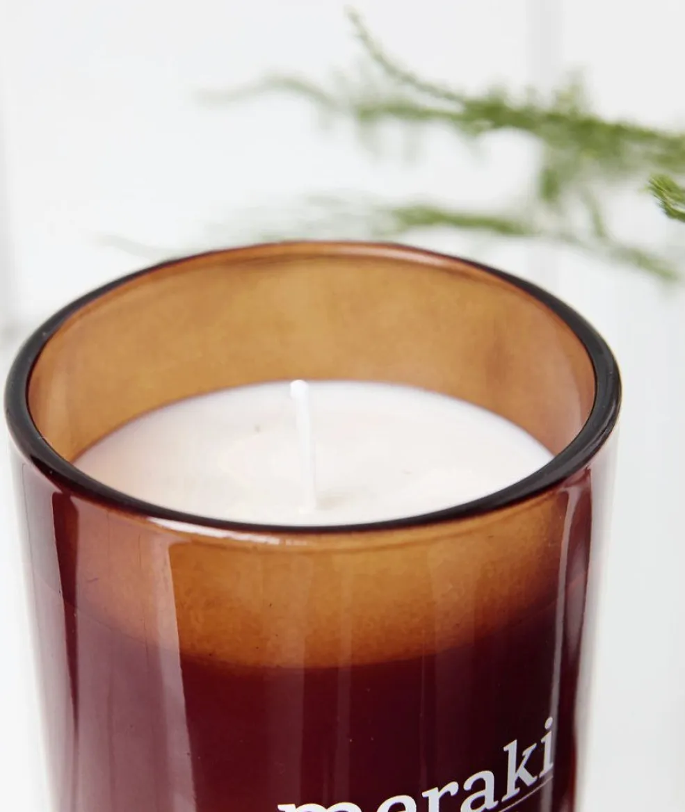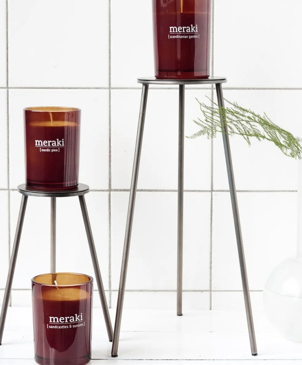 Duftlys fra Meraki som brænder op til 35 timer. Lavet af olie fra sojabønner og giver et rent lys, som soder meget mindre end et almindeligt stearinlys. Nyd den dejlige duft som leder en hen til sandslotte og solnedgange som spreder sig ud i dit hjem. Lyset kommer i et smukt mørkt glas.