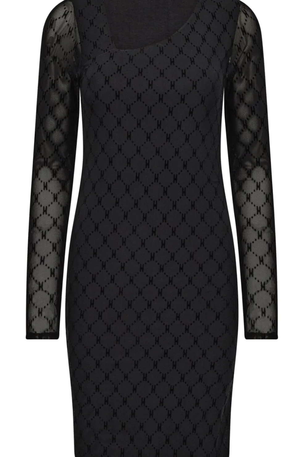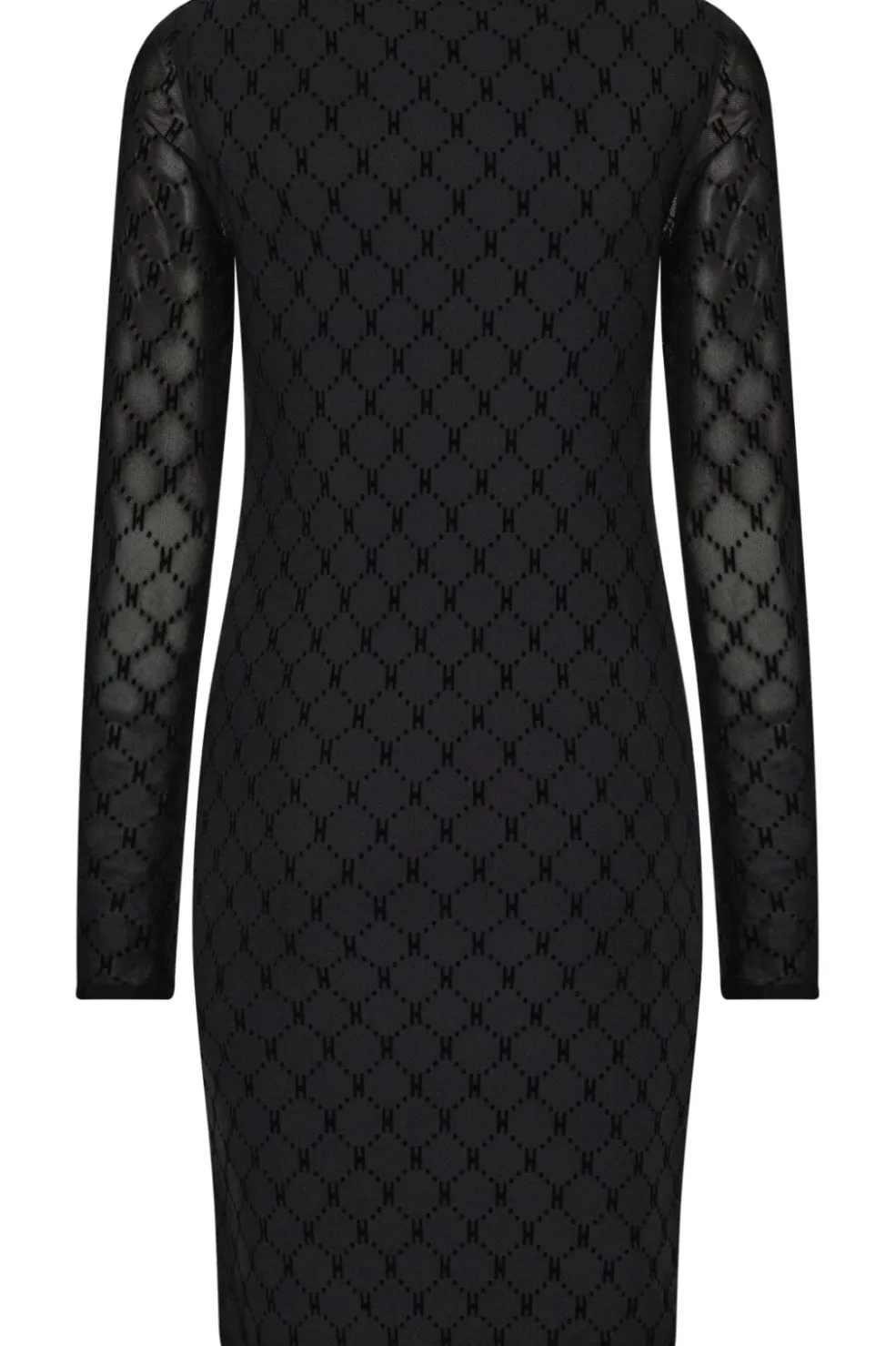 Sort meshkjole fra Hype The Detail med geometrisk mønster. Kjolen har en firkantet udskæring og lange ærmer. Meshstoffet skaber et fint, gennemsigtigt udtryk.