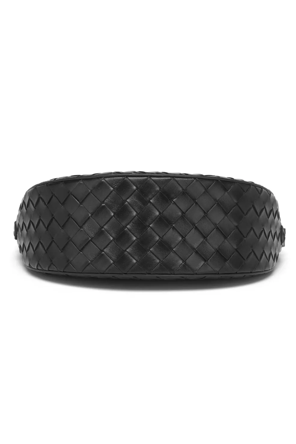 Sort taske fra Noella med et vævet mønster på overfladen. Tasken har en halvmåneformet silhuet og er lavet af 100 % polyurethan.