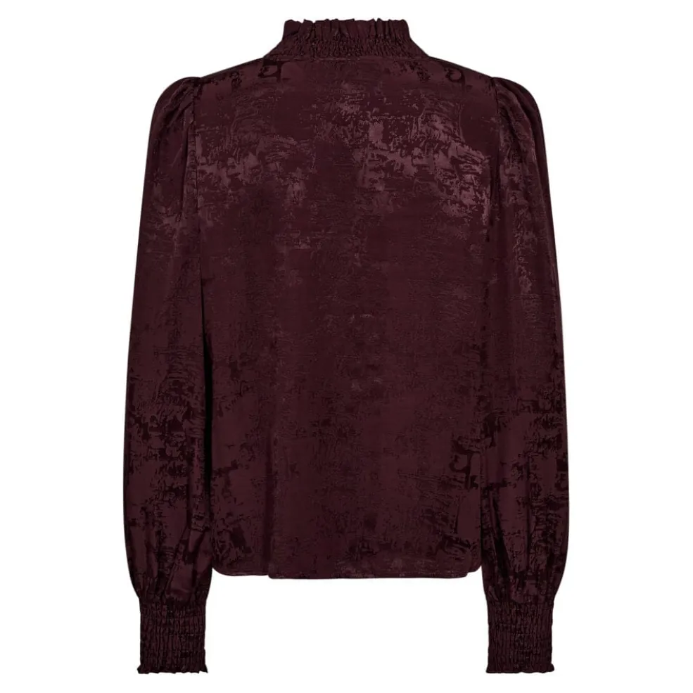 Blommefarvet bluse fra Co´Couture med V-hals og lange ærmer. Blusen har smockede manchetter og et mønster med flæser, der giver et feminint præg.