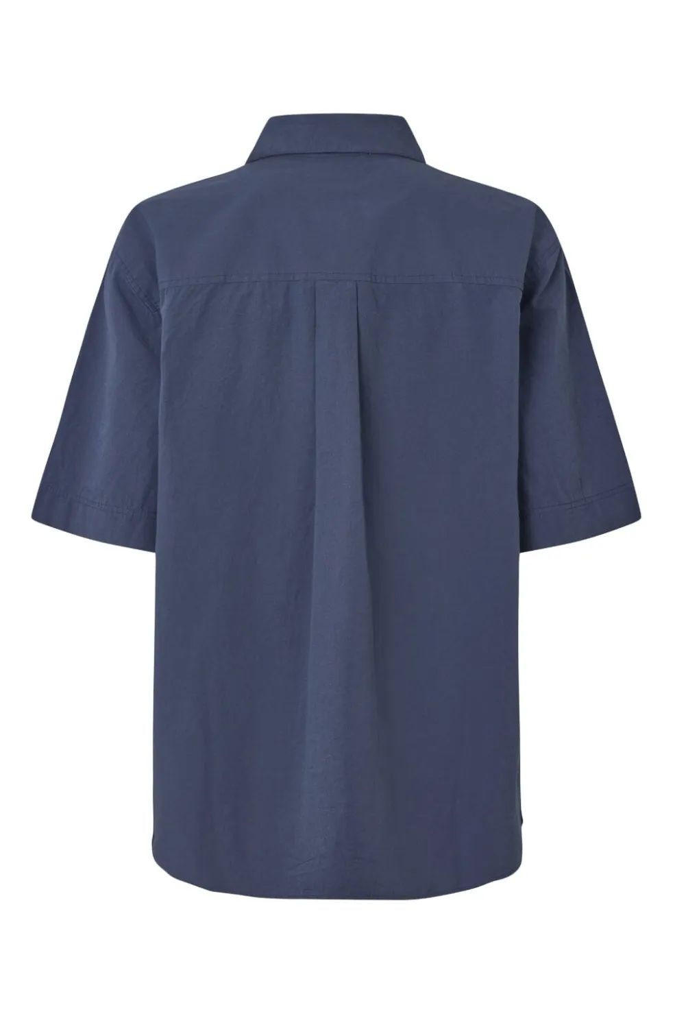 Kortærmet skjorte fra Modström i blå ombre-farve. Skjorten har en klassisk krave og knapper hele vejen ned. Den blå farve går fra mørk til lys i en flydende overgang.