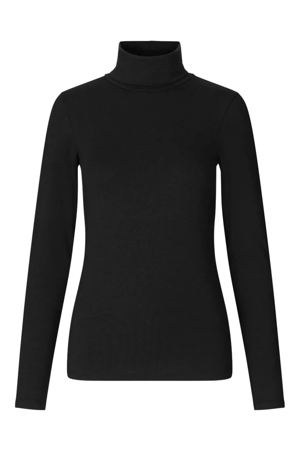 Sort rullekrave-top fra Modström med høj hals og tætsiddende pasform. Toppen har lange ærmer og er lavet i en blød bomuldsblanding.