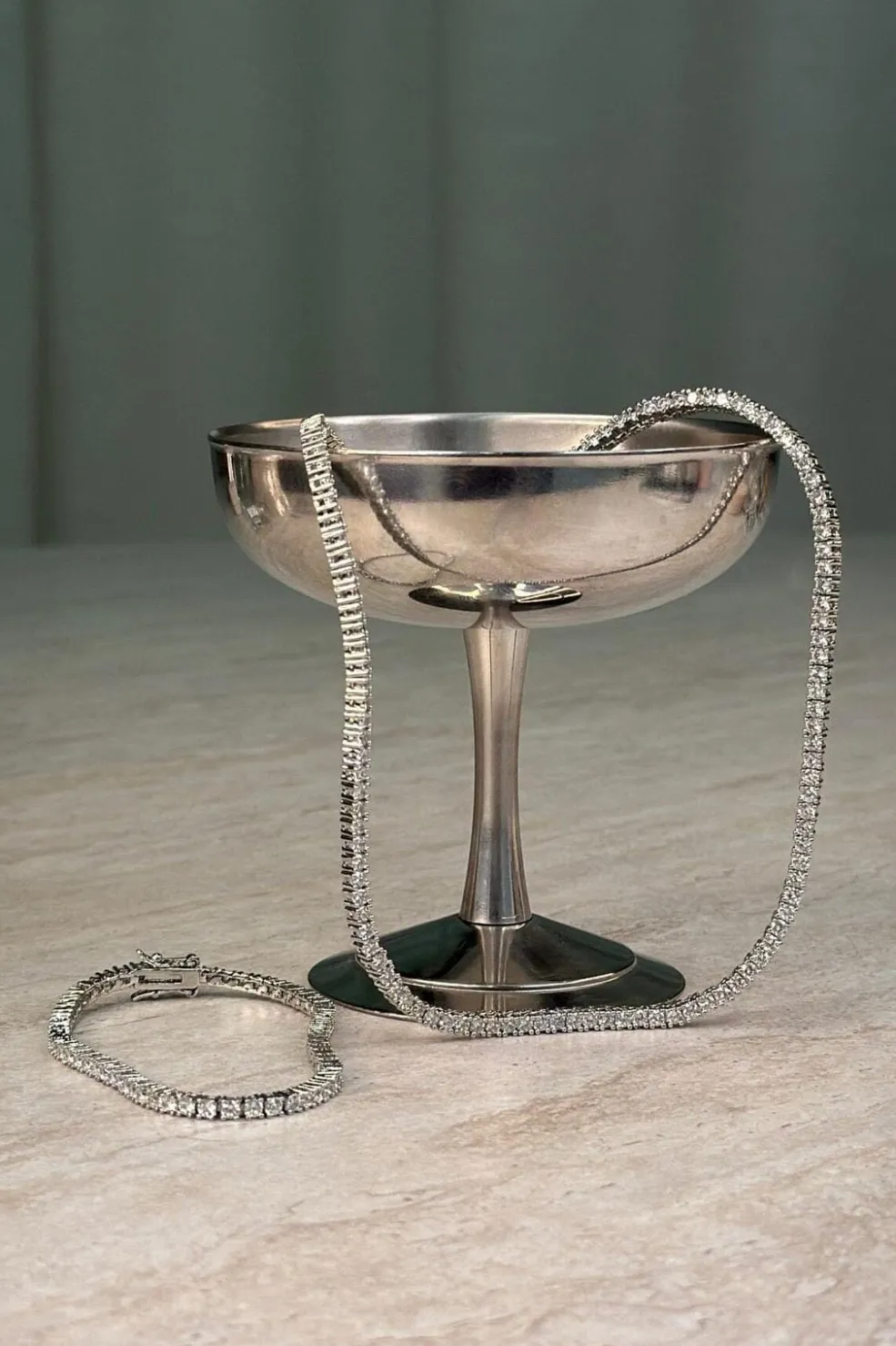 Smykkesæt fra Molly&My Jewellery i forsølvet finish. Sættet består af en halskæde og et armbånd med små sten.