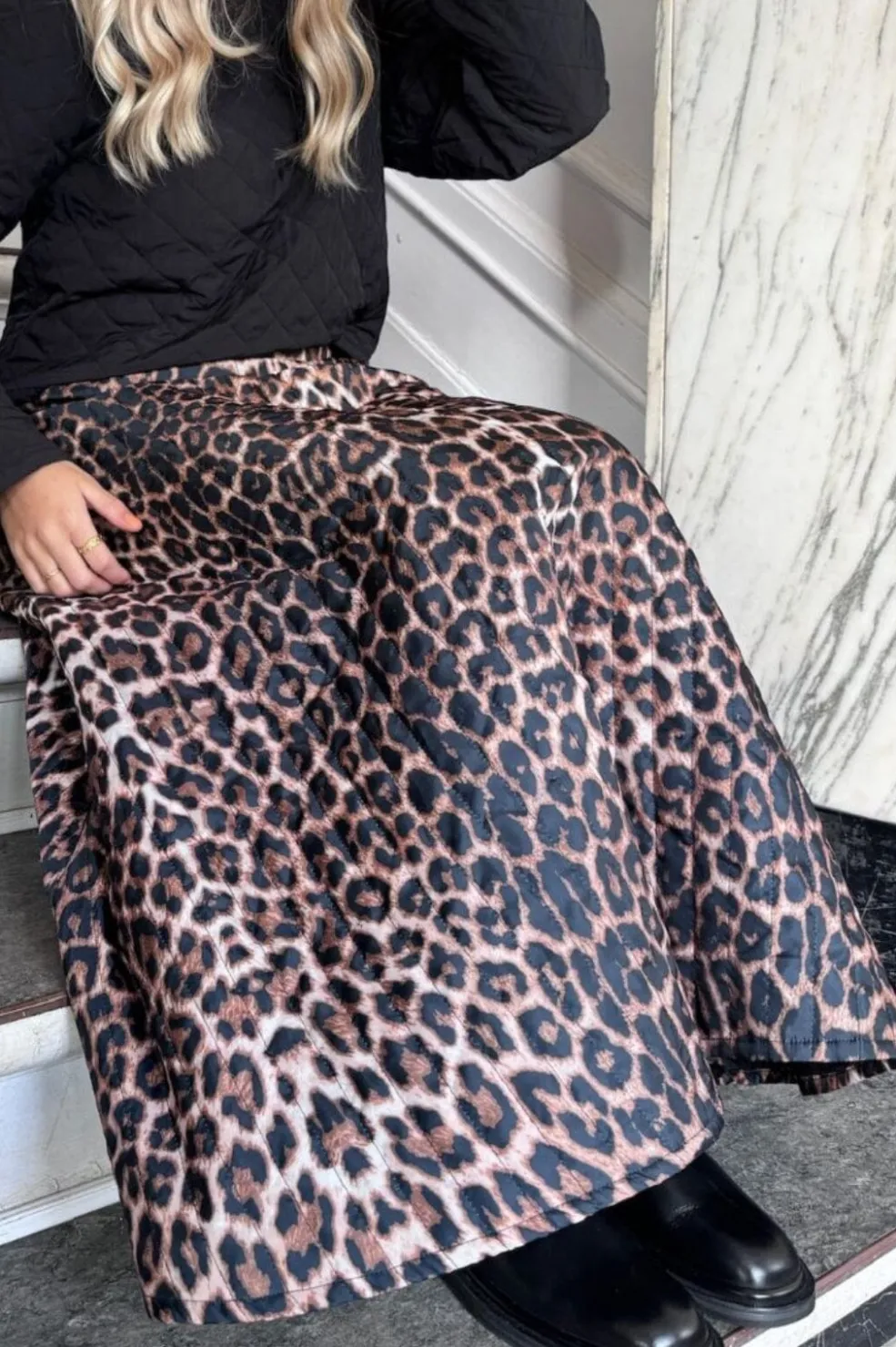 Ankellang nederdel fra Stories From The Atelier By Copenhagen Shoes med brunt leopardprint. Den syntetiske nederdel har en elastisk talje og en regular fit.
